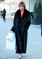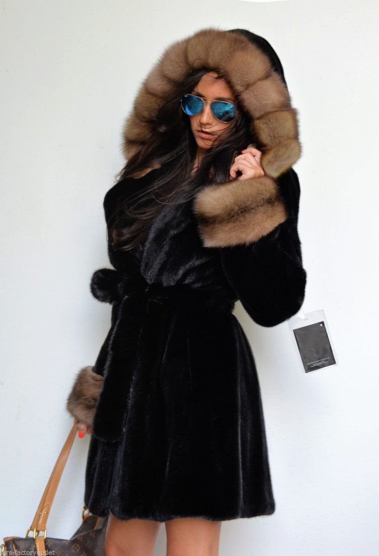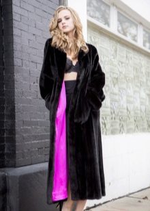 The most incomparable Blackglama looks in traditional styles of straight or trapezoidal silhouette, made of solid pieces of fur. The cozy version with a hood looks impressive. Other elements of the decor for such a coat are superfluous (except that you can emphasize the waist with a belt).