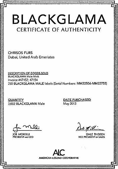 Blackglama manufacturers are extremely sensitive about the protection of their goods.Therefore, each item of this brand has a passport and a company label that is sewn from the wrong side of the product. The label always contains the serial number of the fur coat, which can be checked on the official Blackglama website.