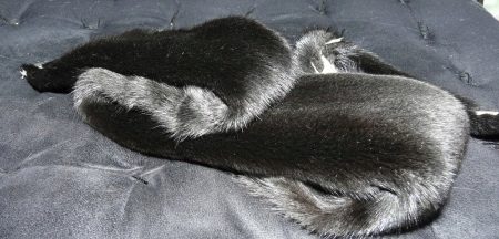 It has a characteristic matte appearance, the fur is very delicate to the touch, resembles plush or velvet, and the most characteristic feature is a deep luxurious black color. The pad of this black mink is unusually thick and dense. Therefore, it is a very warm fur with high wear resistance (due to the low spine, equal in length to the under-cap). Such high quality allows products to withstand repeated dry-cleaning and overlapping.