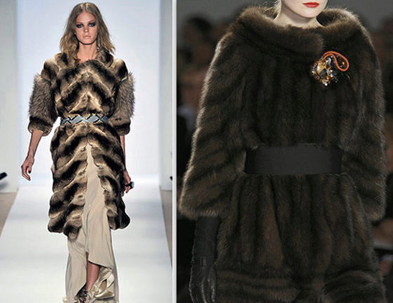 - "Cross". Chanel fur coats sewn from long horizontal stripes of fur look great, but not every woman will do. Owners of wide hips better to abandon this model. They have a midi length and short sleeve. A small collar lies on the shoulders, which creates a smooth transition from the neck to the sleeves.