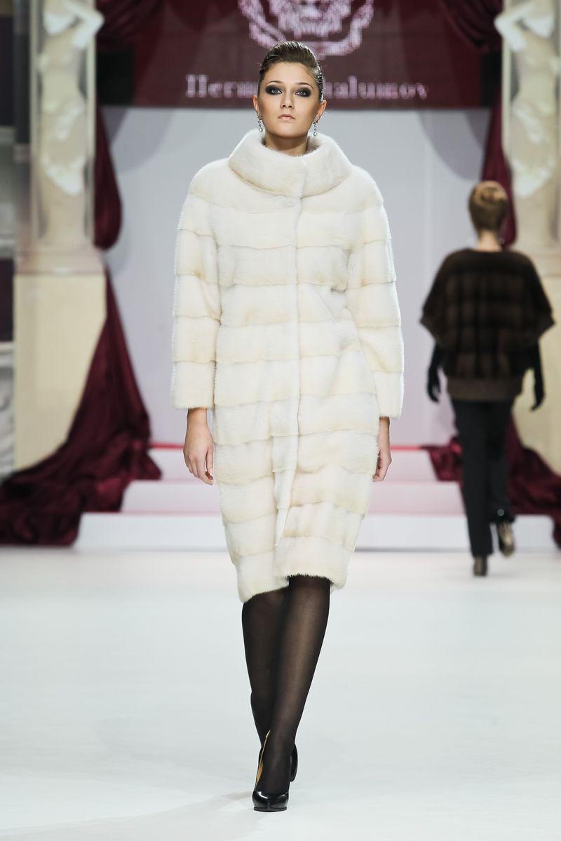 A fur coat with an A-shaped silhouette, a stand-up collar and a shortened sleeve gives the image of femininity. This model can be worn, as with a skirt, so with pants.
