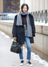 An excellent solution - cashmere, trimmed with fur or a fully knitted fur scarf, which can be decorated with fringe. This option is especially appropriate with long models that have a collar and belt.