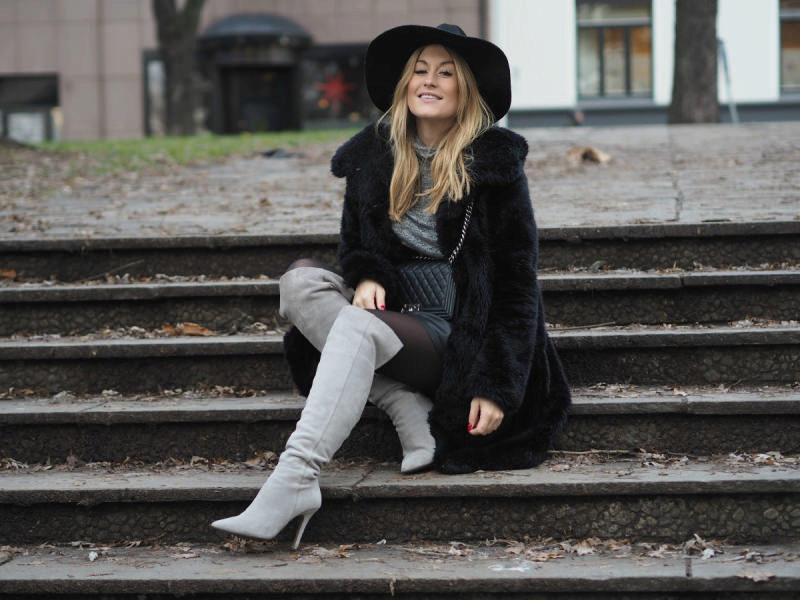 You should also try on a stylish felt hat for a fur product. It looks feminine and, moreover, will not spoil your styling.