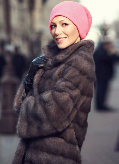 Mink fur coat is quite acceptable to wear with a knitted hat, but to get a harmonious image, you need to choose it correctly. Otherwise, this headdress is able to “cheap” a fur coat. It is recommended to choose bright, contrasting hats of the smallest knit or stylish elongated versions of a large knit.
