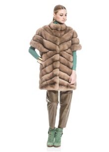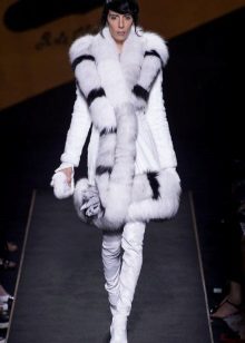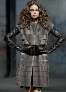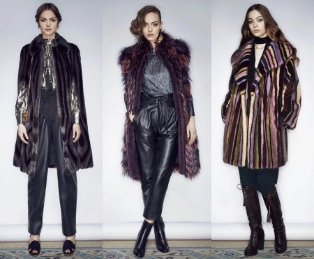 One of the fashionable techniques is the combination of different types of fur among themselves or with other fabrics. For example, there are lush cuffs of lynx or sleeves, a belt made of leather, suede.