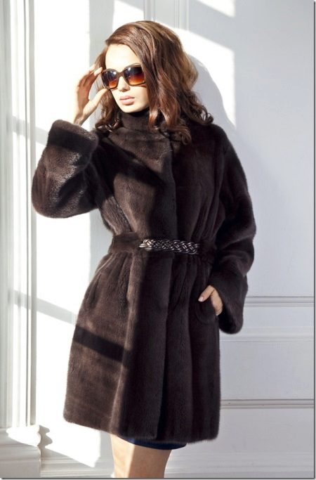 Thanks to the advanced technology, a mink coat can be not only natural in color, but also brightly colored, for example, in red, blue, and purple. As decorative elements, inserts of other materials, buttons and clasps lined with rhinestones and stones, embroidery are used.