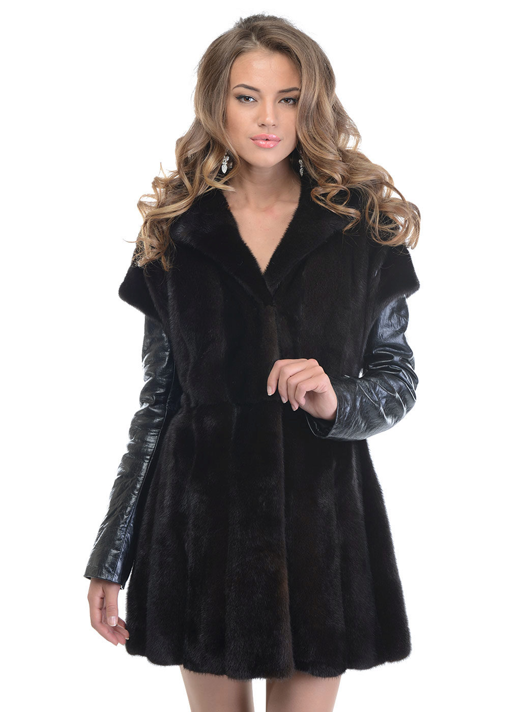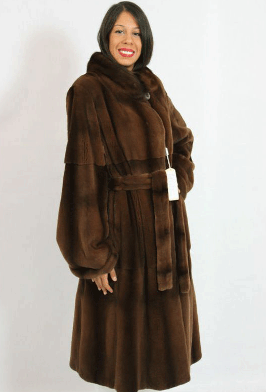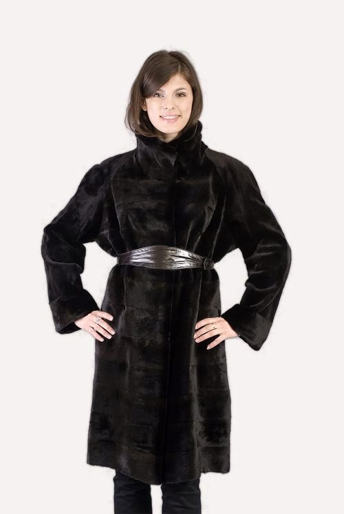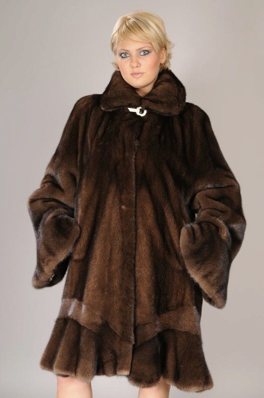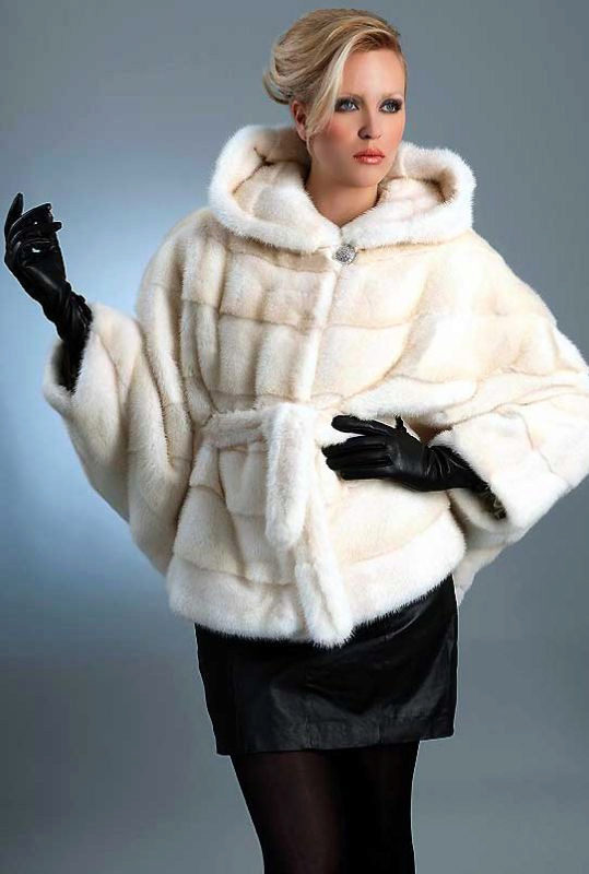 The “bat” model is a fur coat with sleeves wide at the base, like a cape or poncho. The length of this coat varies from below the belt to above the knees.