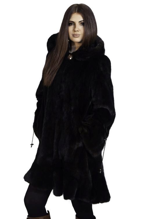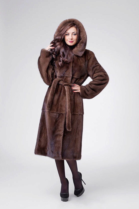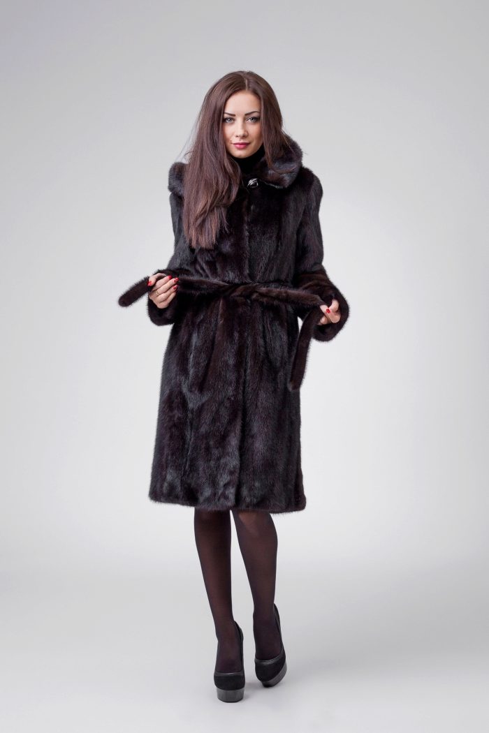 Fur coats of direct cut of different lengths come with or without a belt, with a turn-down collar, stand or hood. Fur coats with a hood are the most in demand, making it possible to dispense with a headgear protecting from wind and precipitation.