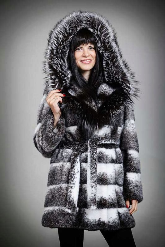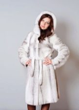 The classic coat model, elegantly intercepted by a fur belt, is a wonderful way to emphasize the waist and create a feminine look. A soft hood will protect your head from cold and wind, will not allow the weather to spoil your hair. Solid image in which nothing distracts from the luxury of fur.
