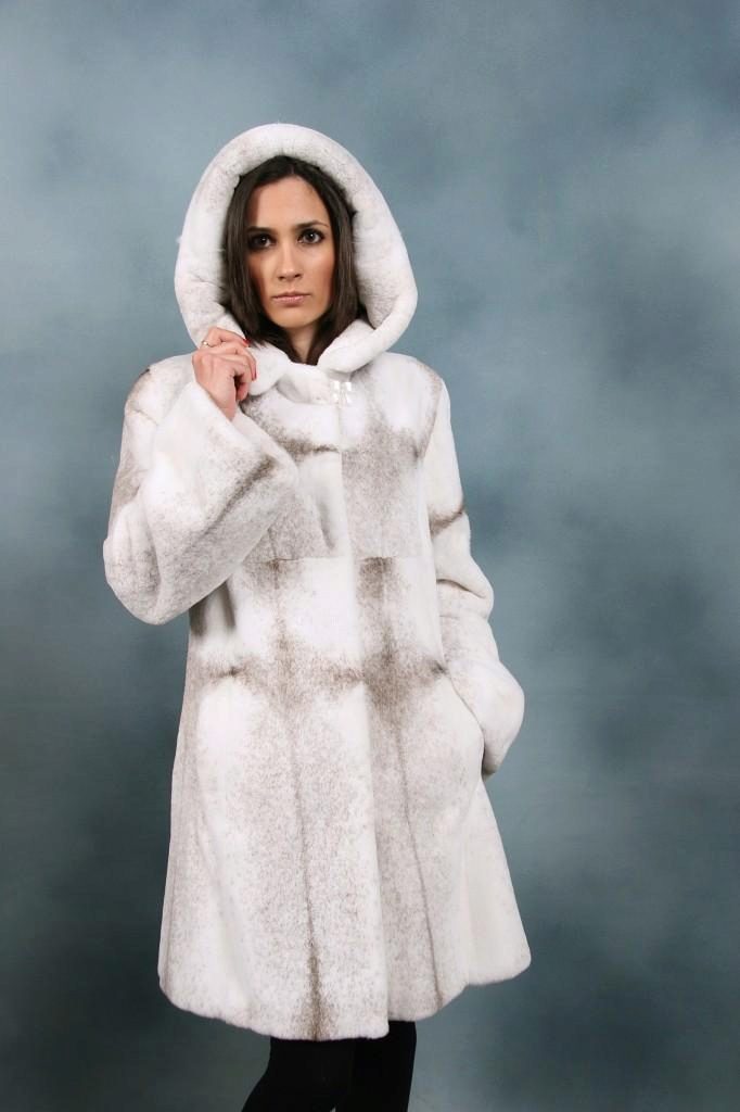 Well-looked classic models - straight or A-shaped cut, length just below the knee. Another style that turns this fur into a work of art is short fur coats, practically the “jacket” style.