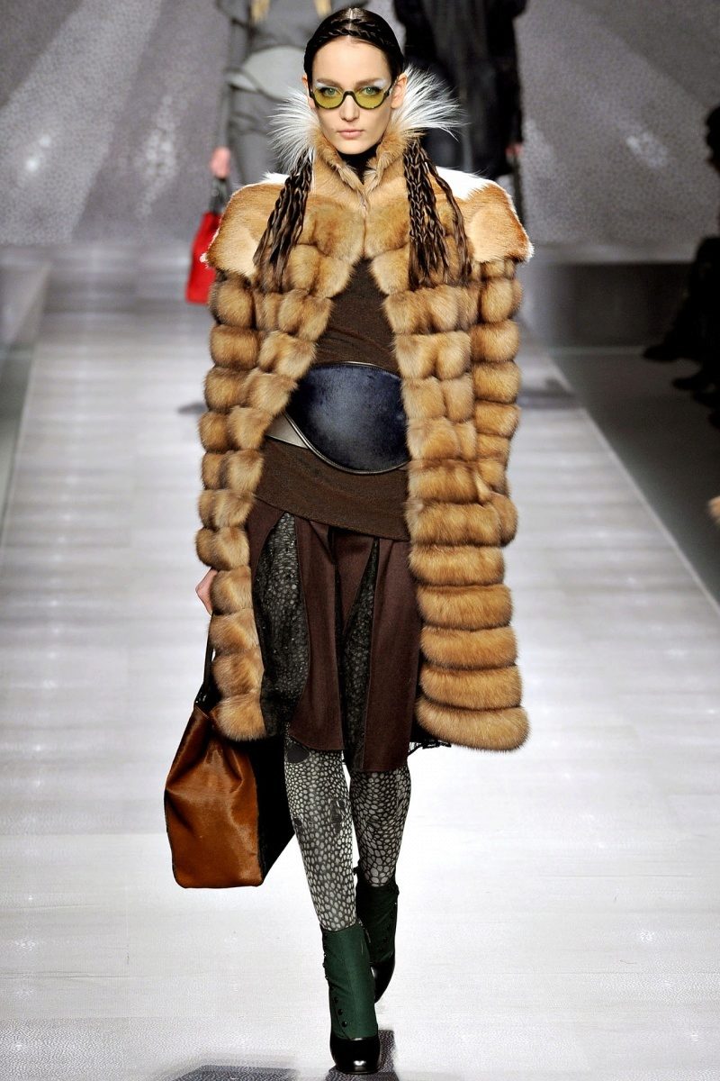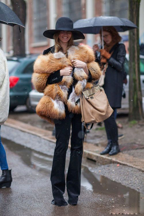 Long fur coats can be combined with almost any other things, since the hem of this model hides the rest of the clothes under it.