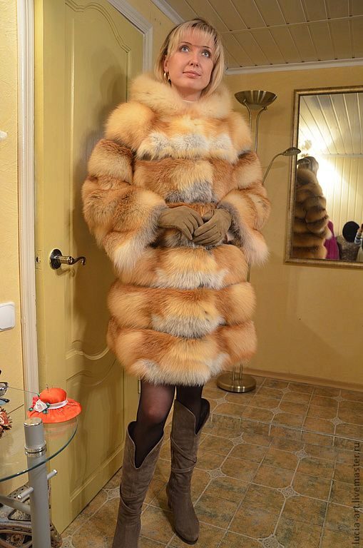 It is made according to the same technique as the transverse fur coat, with only one difference - the flaps are sewn in the longitudinal direction and whole pieces can be used in the manufacture of hoses and hood. |