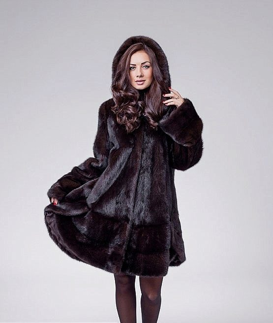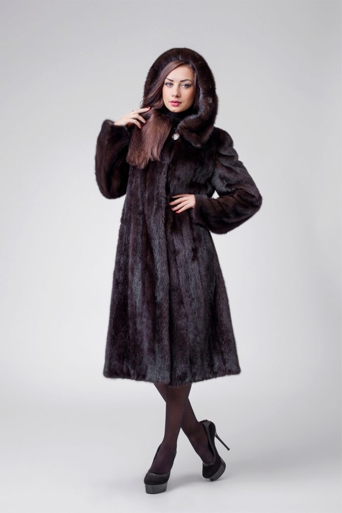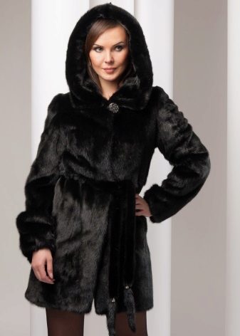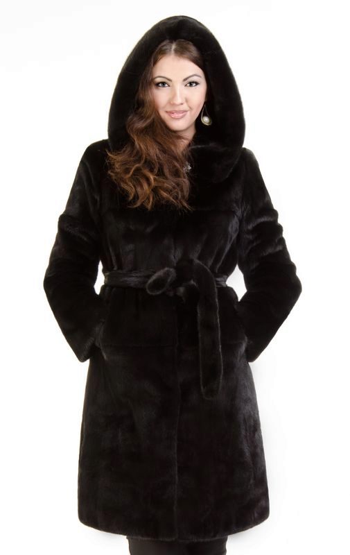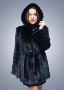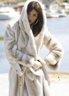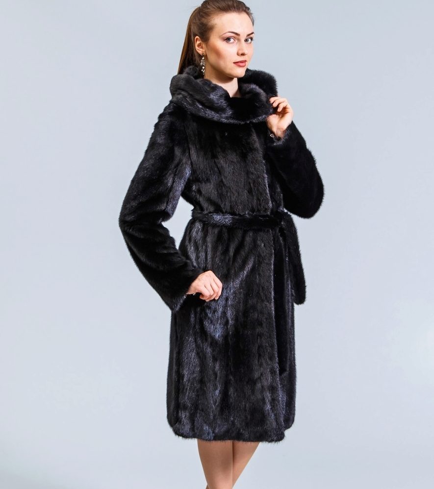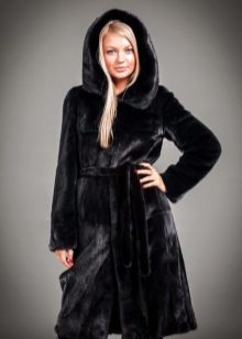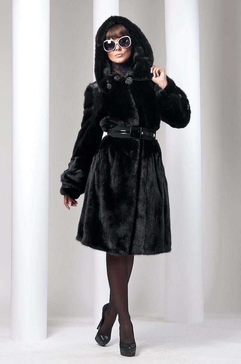 The classic model of mink coat with a hood is the so-called coat-robe. Her simple and elegant style will certainly suit both a conservative lady who is not inclined to excessive kitsch, and a girl who wants to look elegant and stylish.
