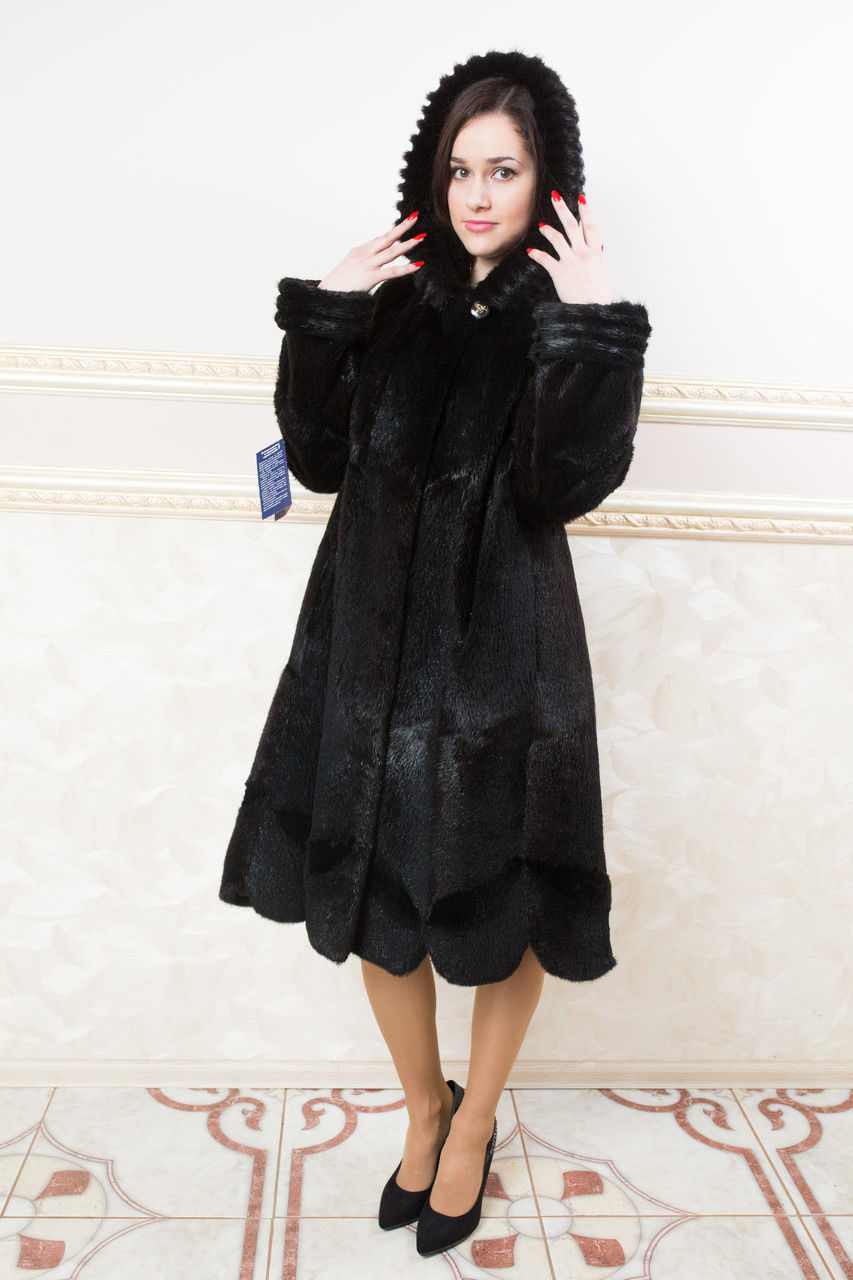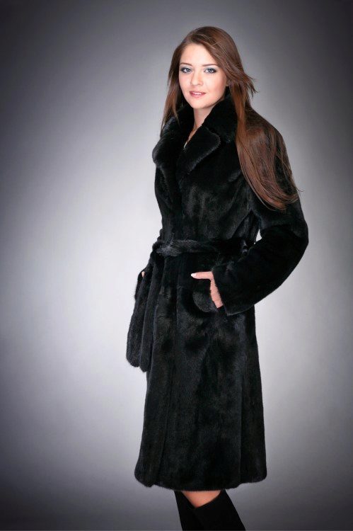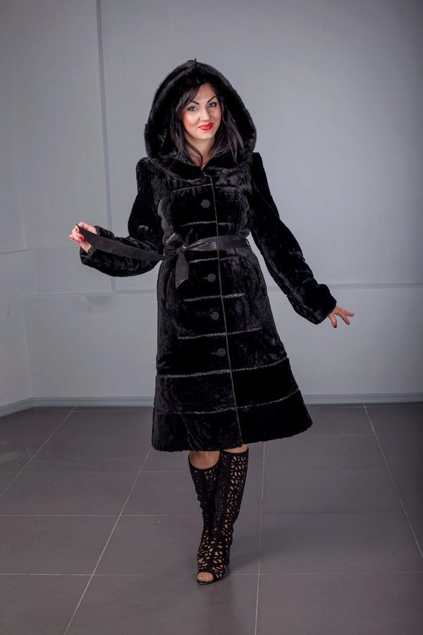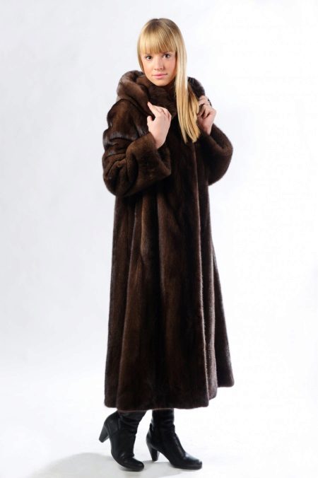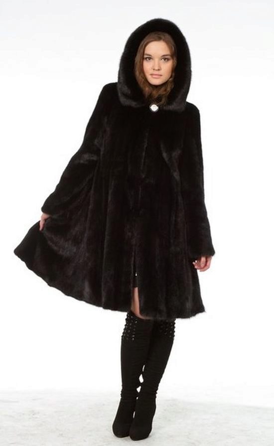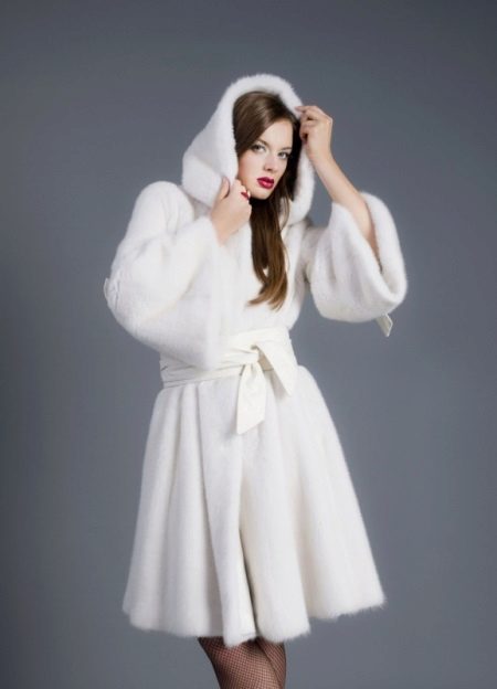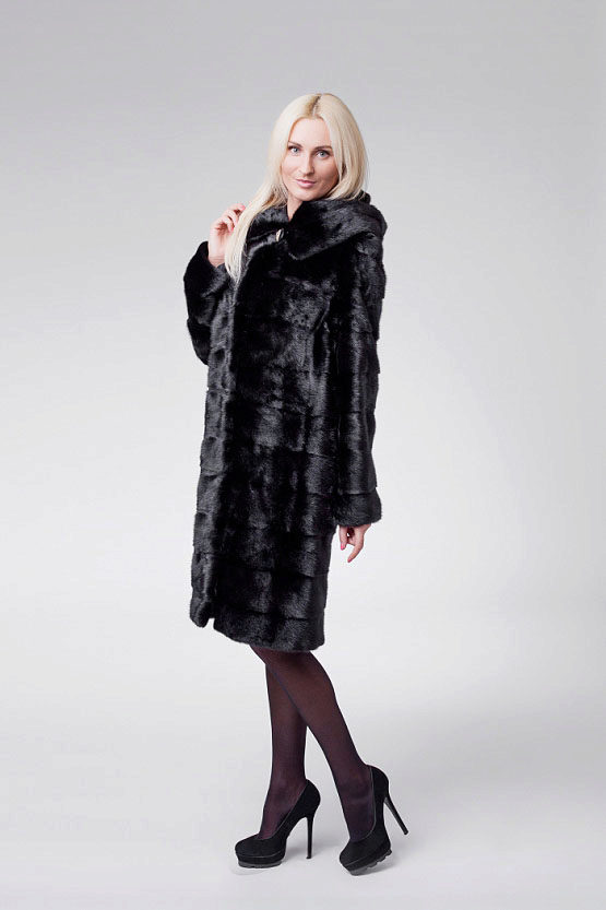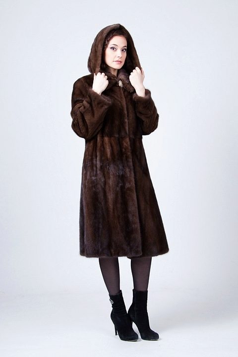 The classic model of mink coat with a hood is the so-called coat-robe. Her simple and elegant style will certainly suit both a conservative lady who is not inclined to excessive kitsch, and a girl who wants to look elegant and stylish.