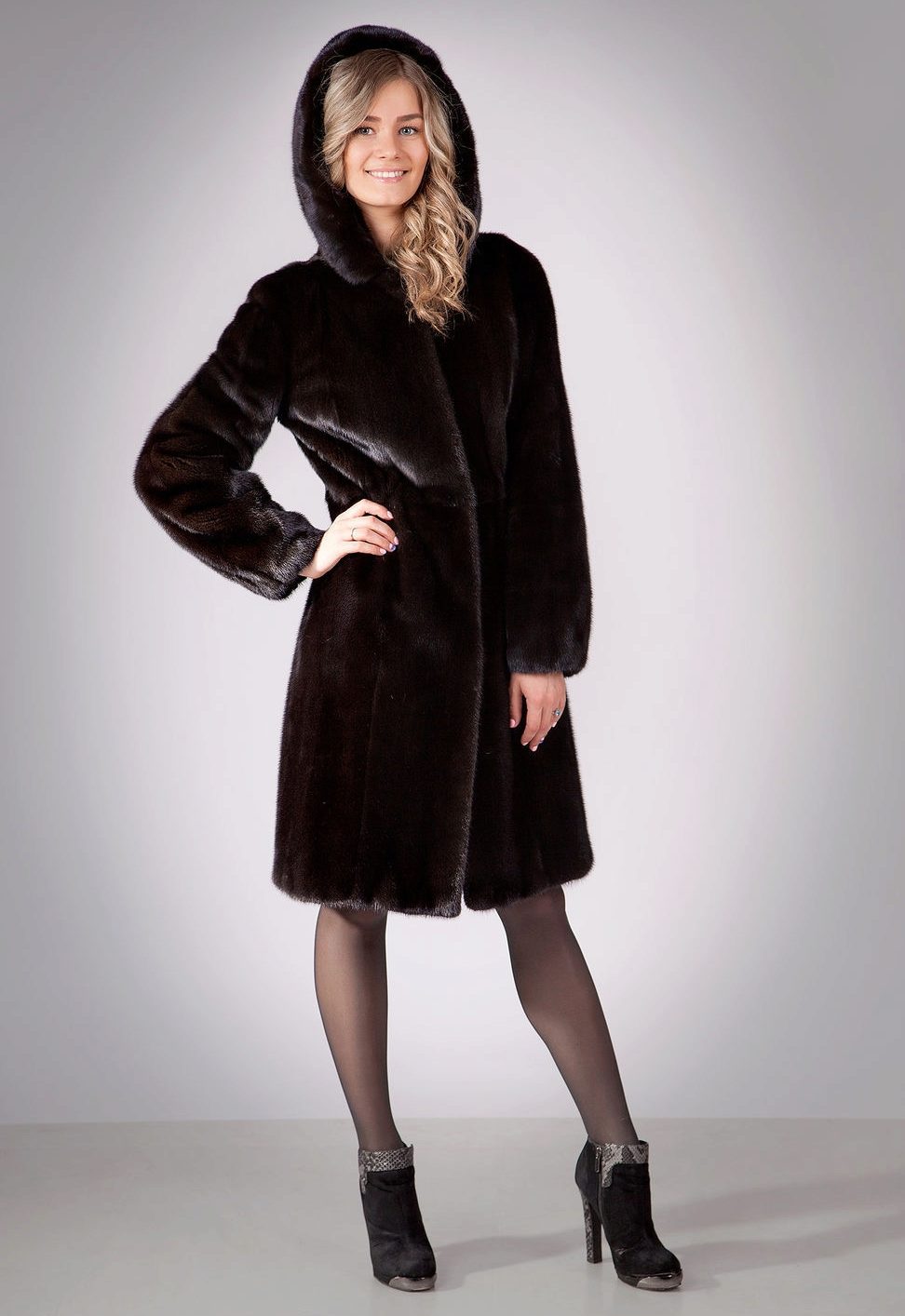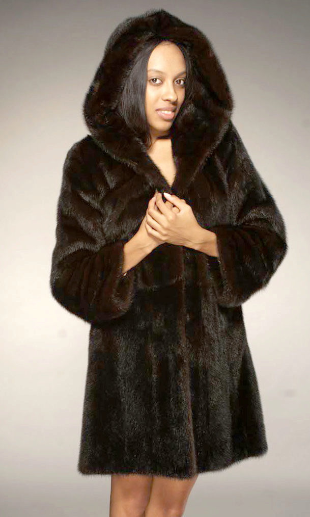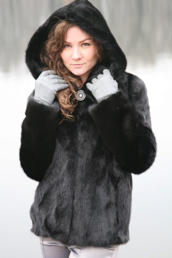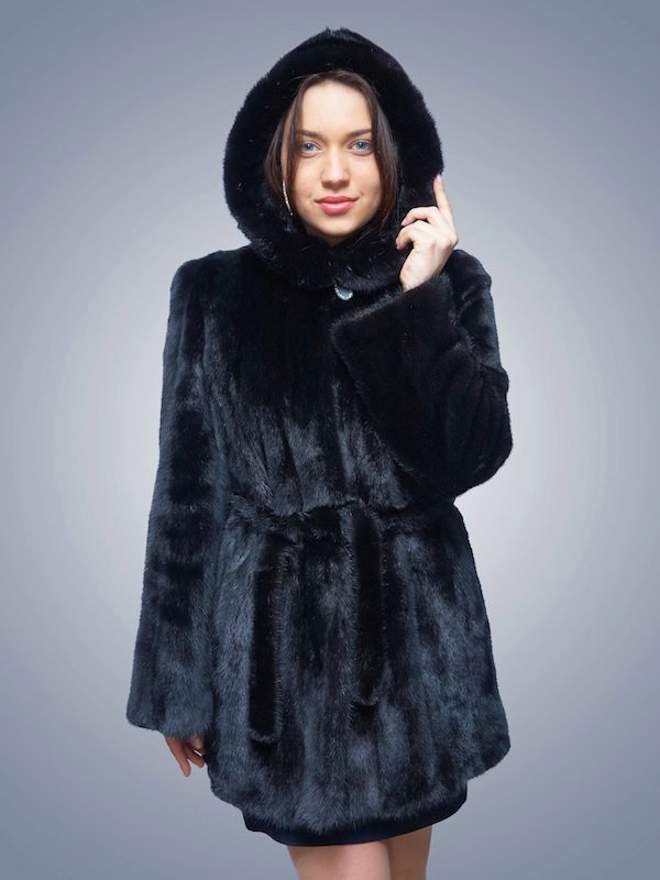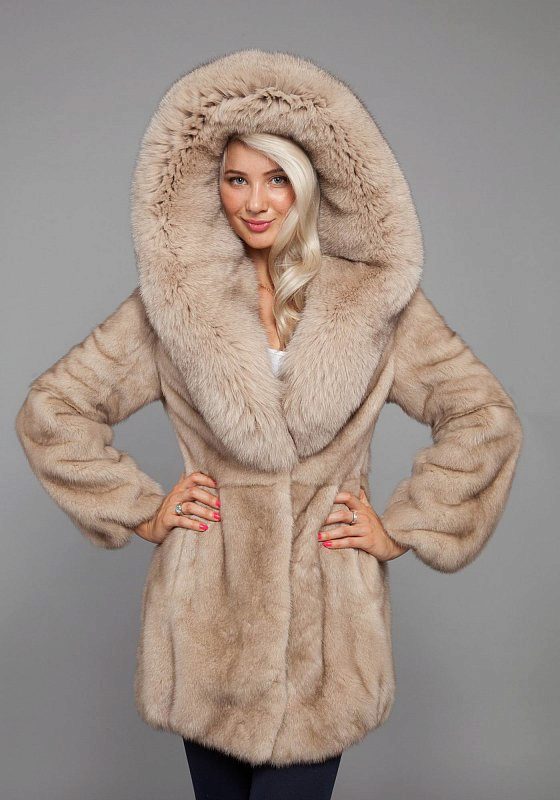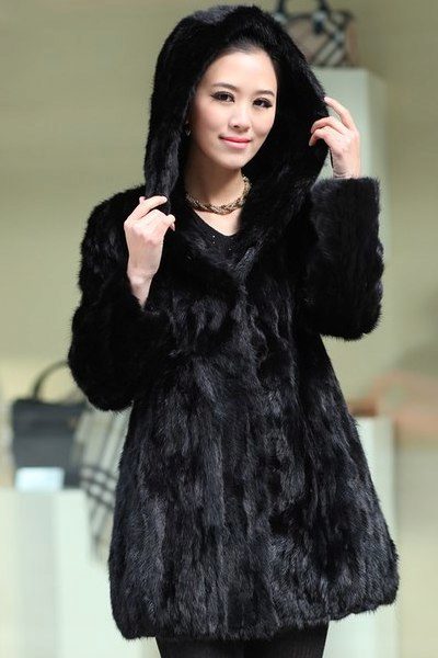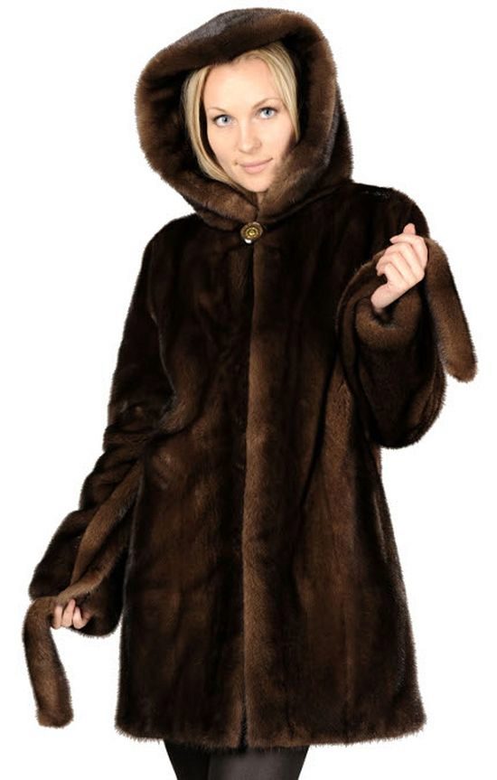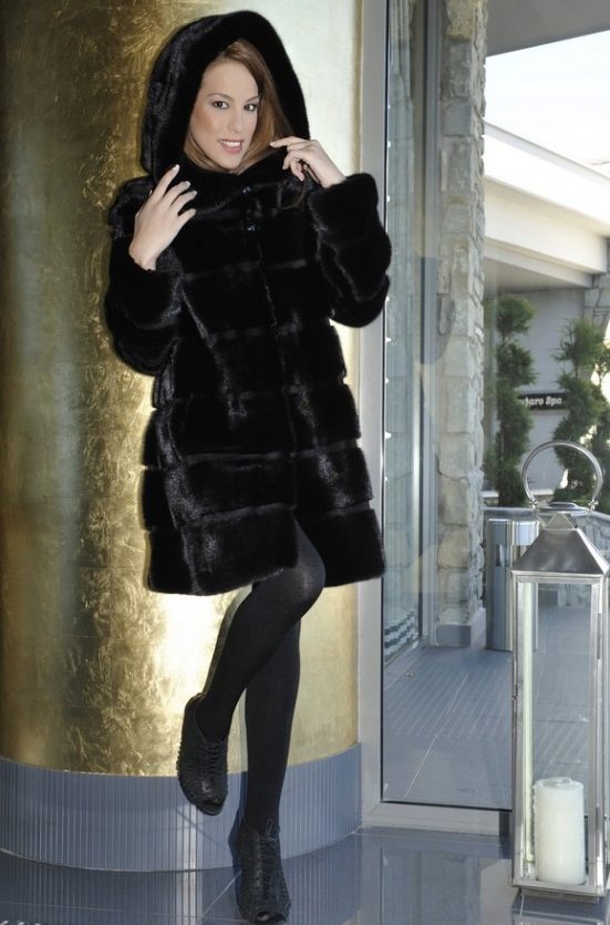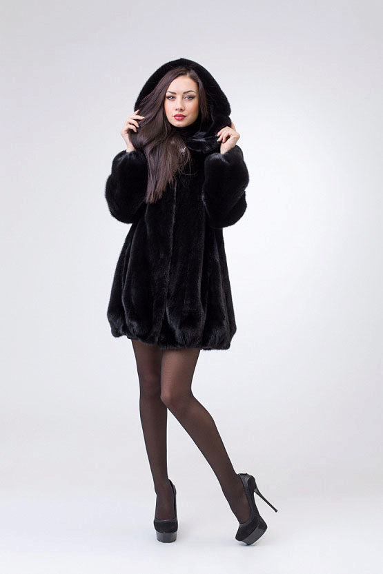 Mink coats with a hood