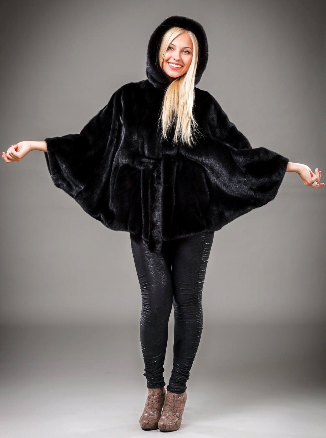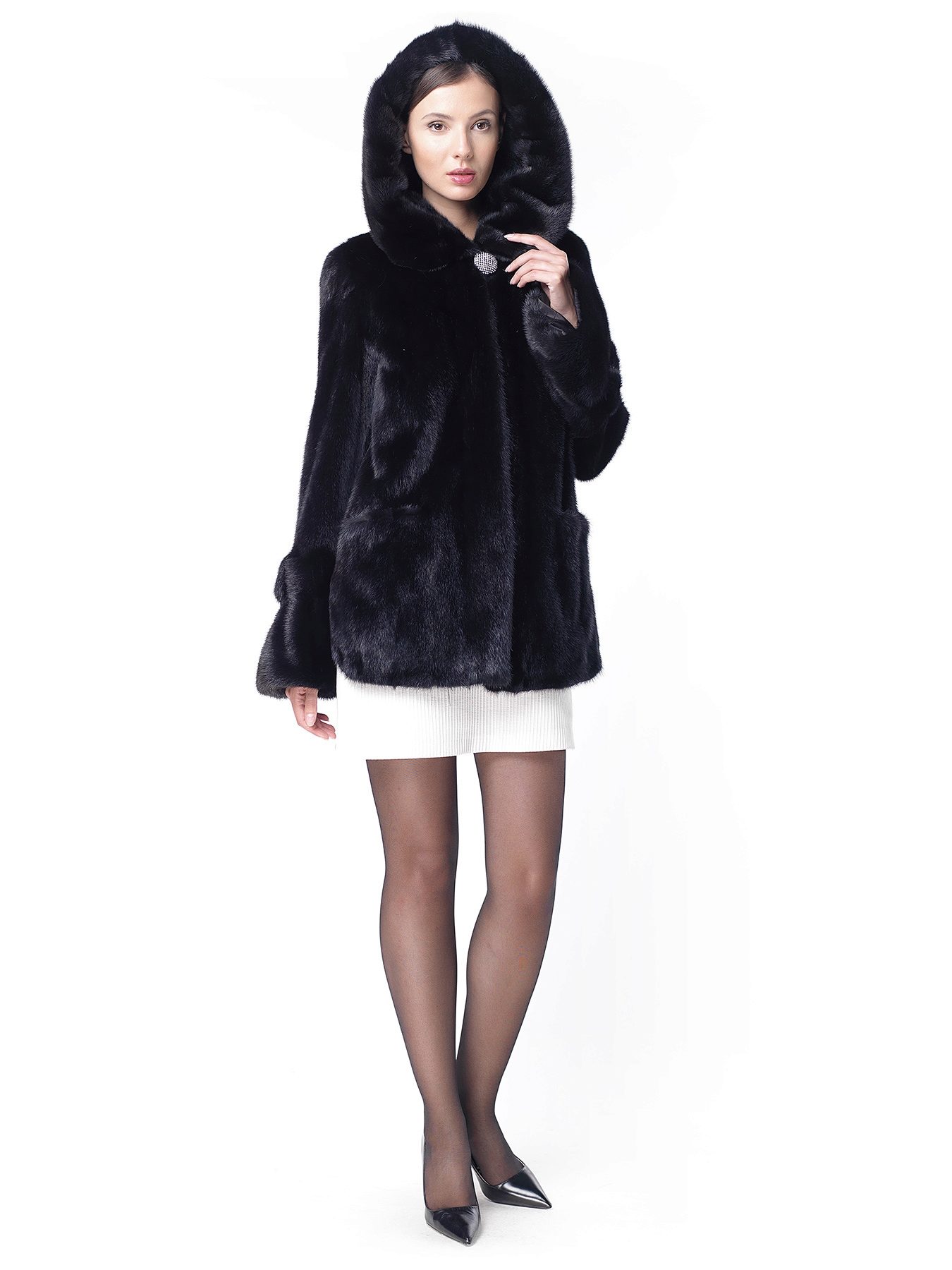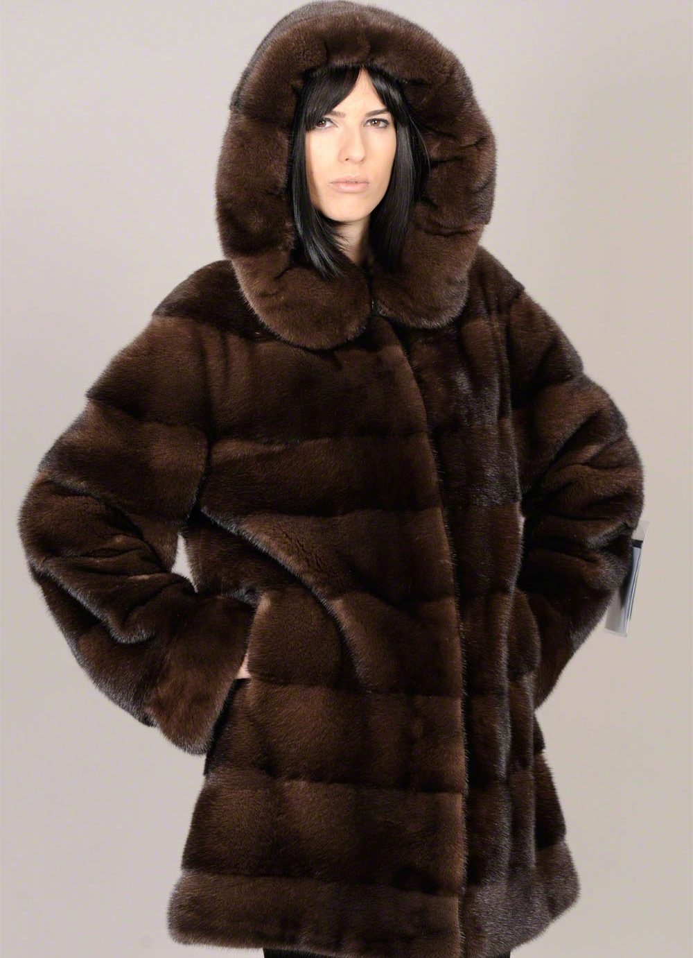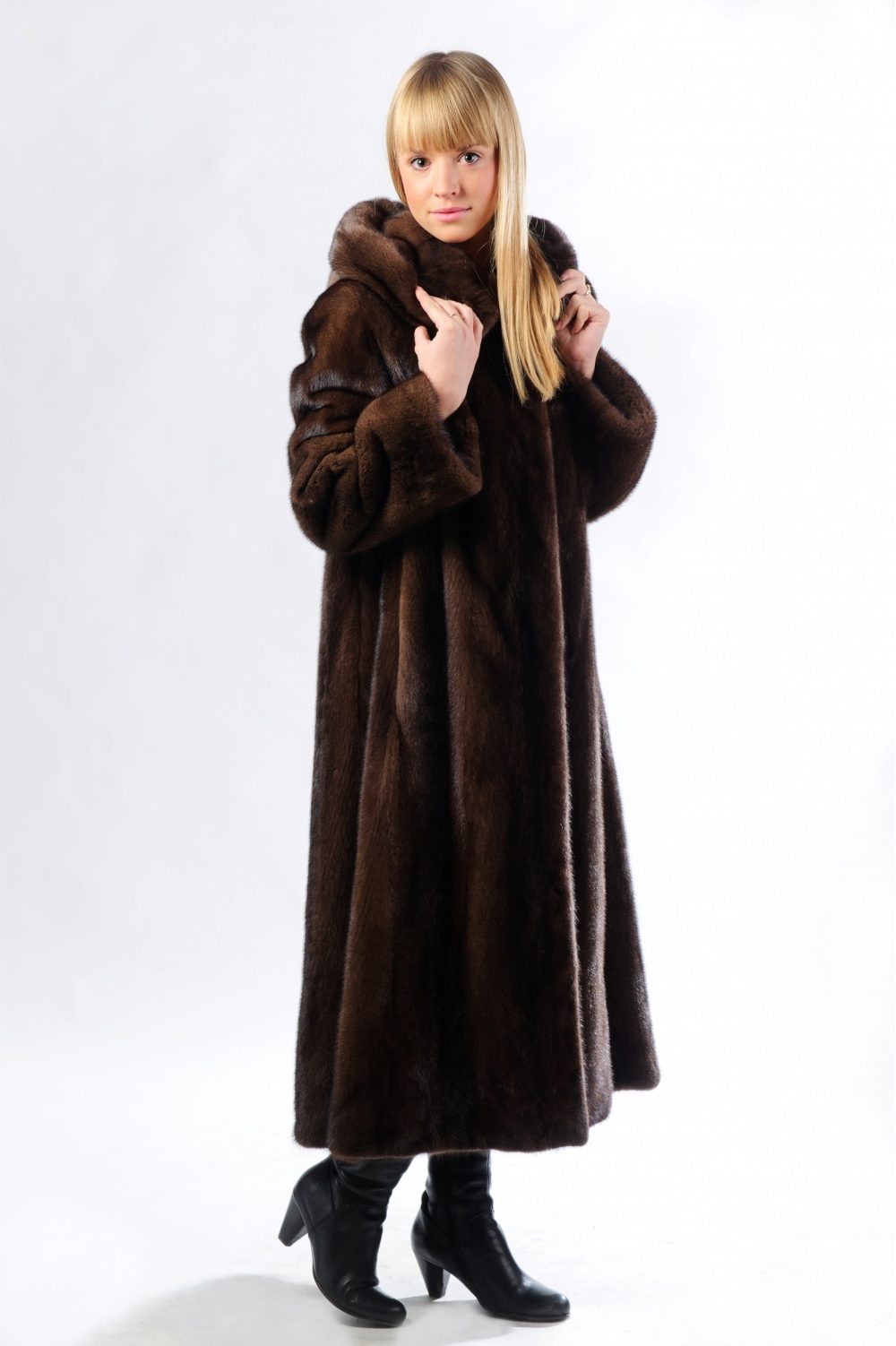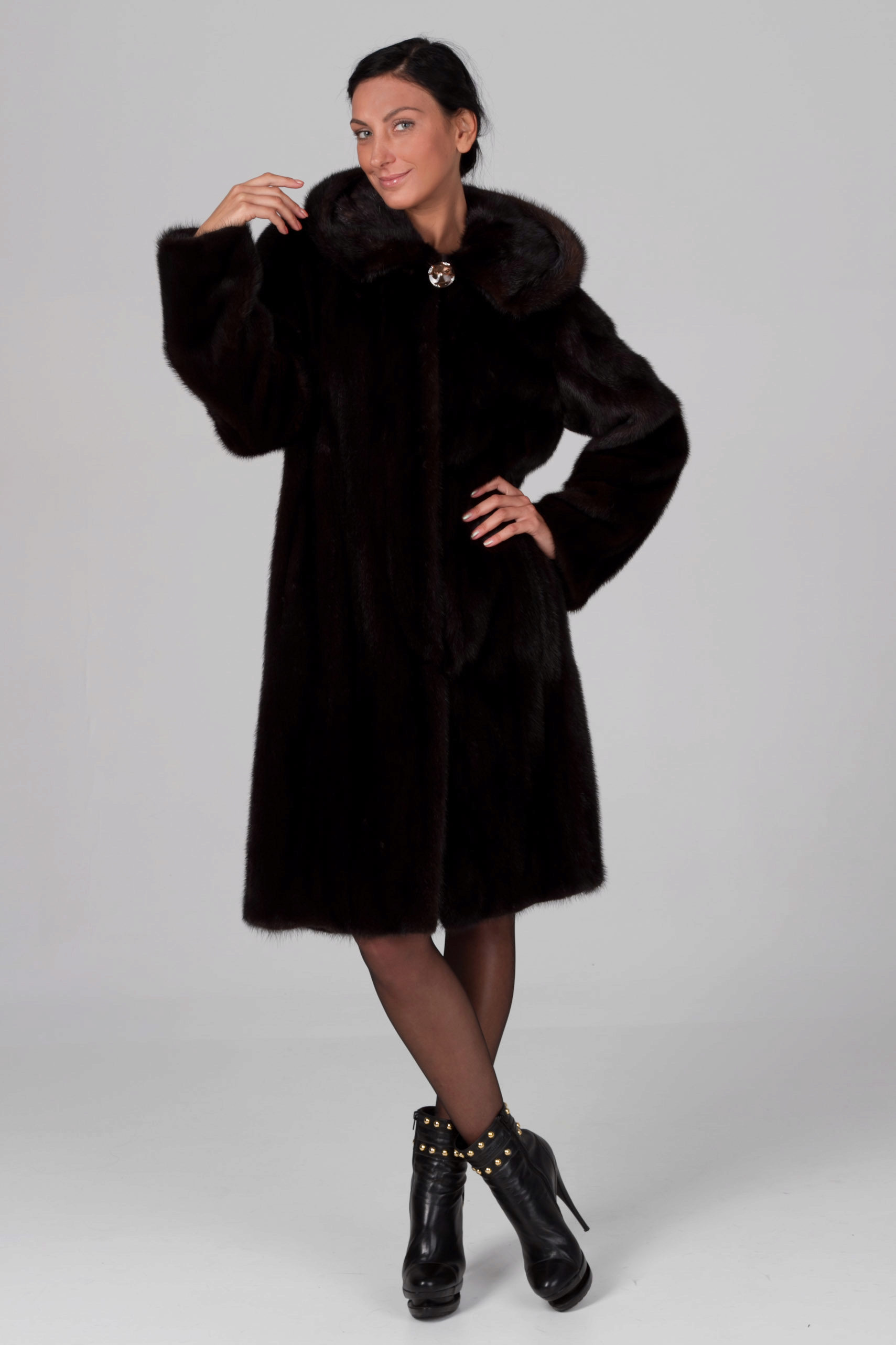 Mink coats with a hood