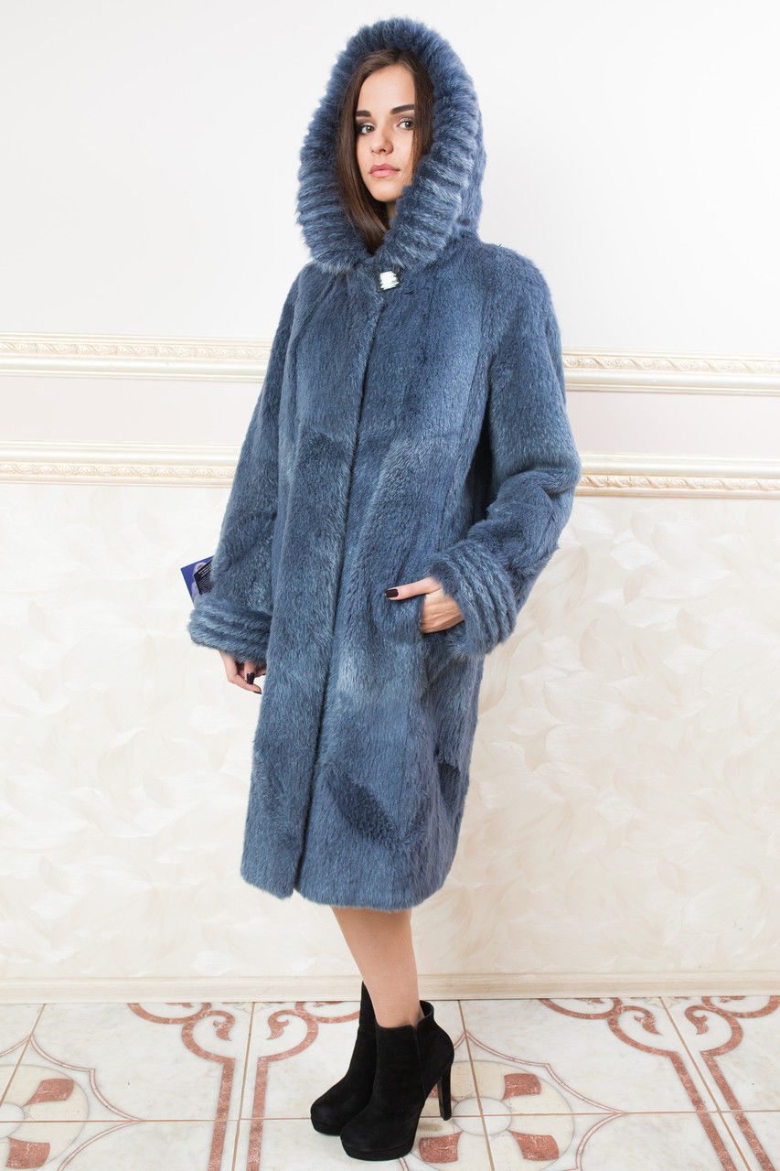 A bright, confident women will go blue mink coat. Depending on the shade, the blue fur is divided into sapphire, topaz, pearl, silver-blue and “violet”.
