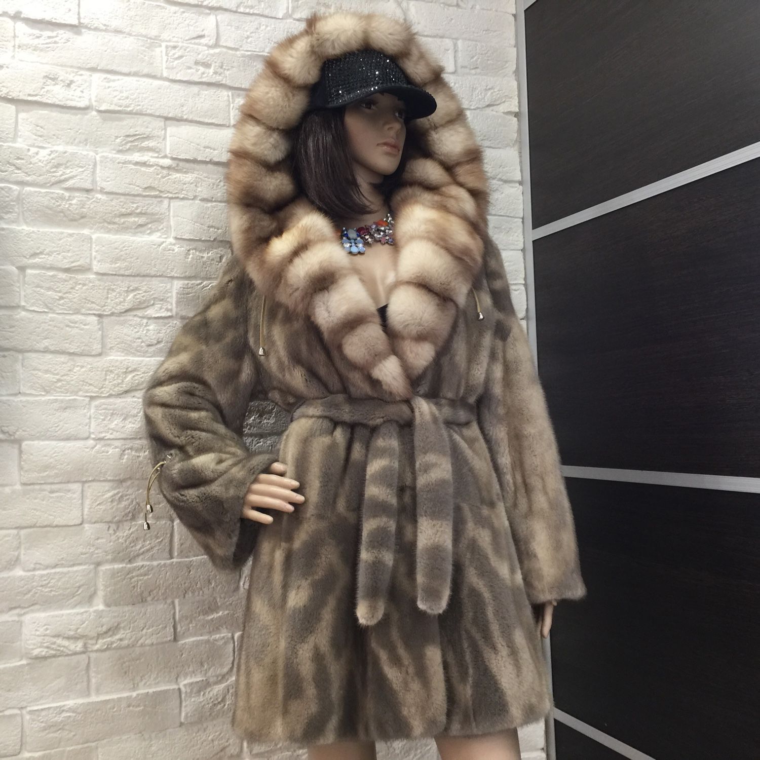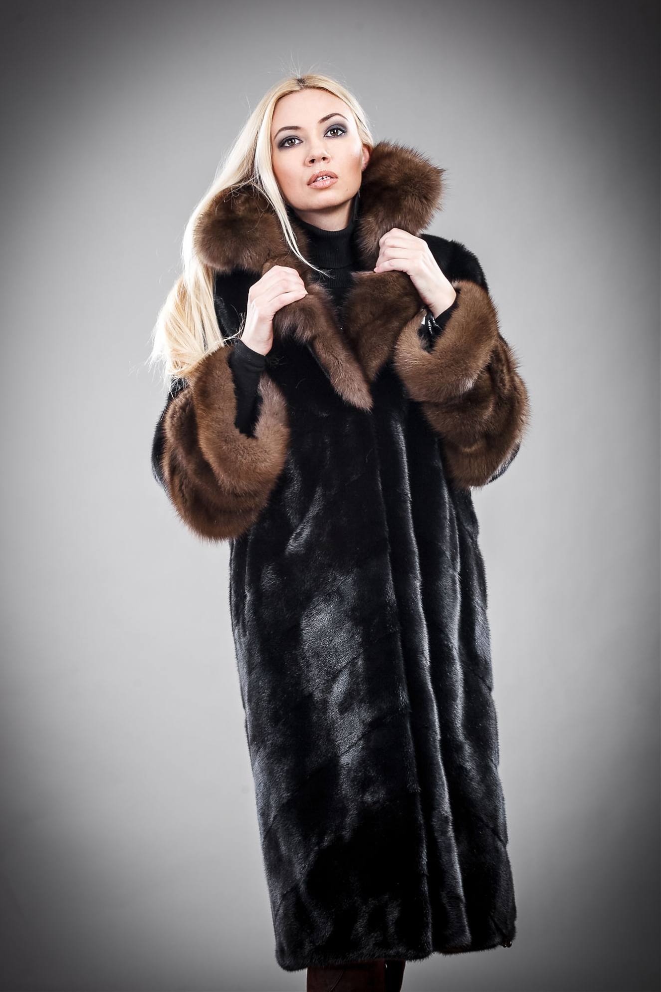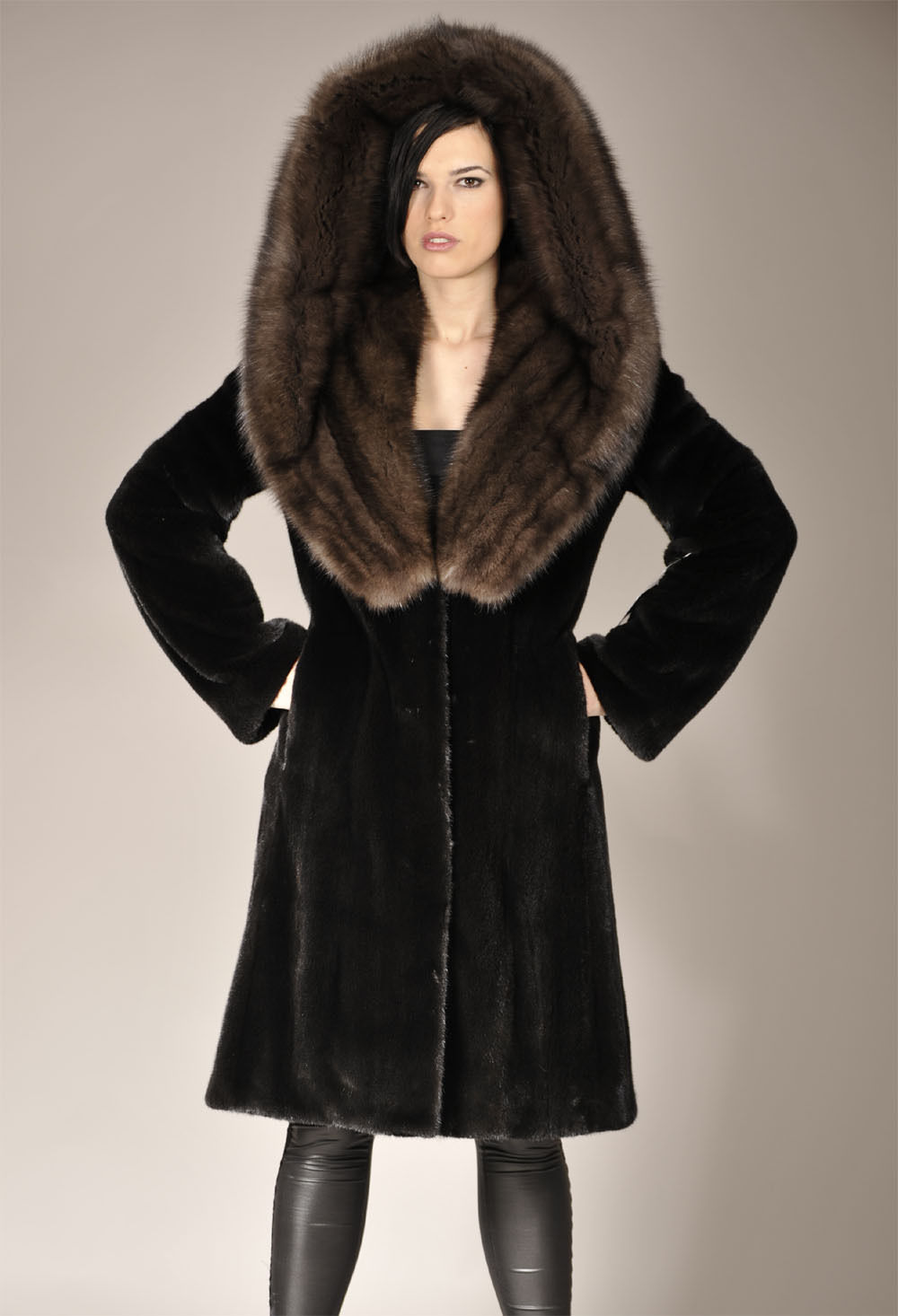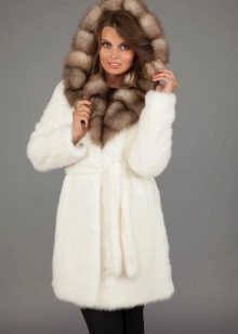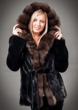 Mink coat with a hood made of sable fur