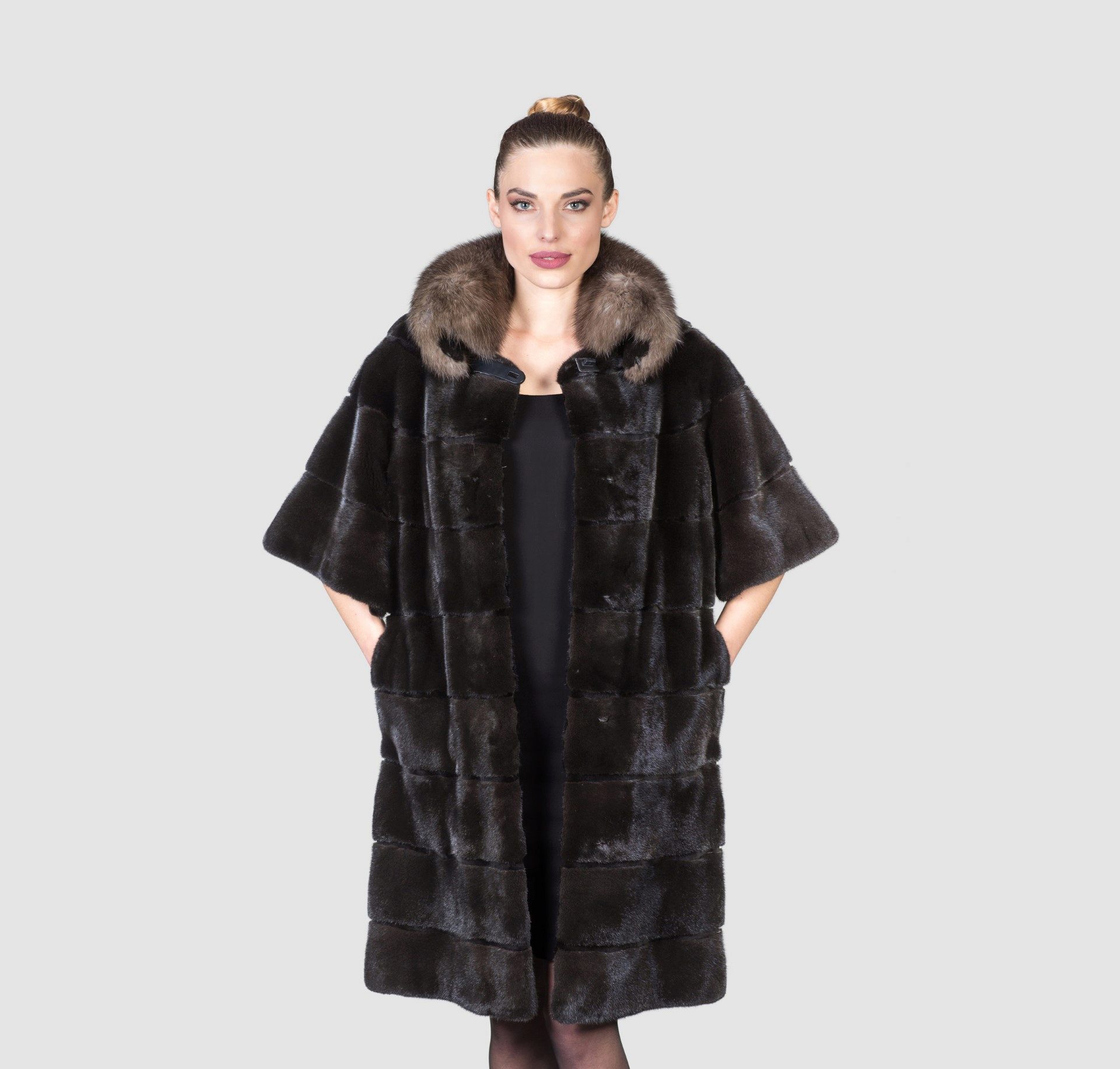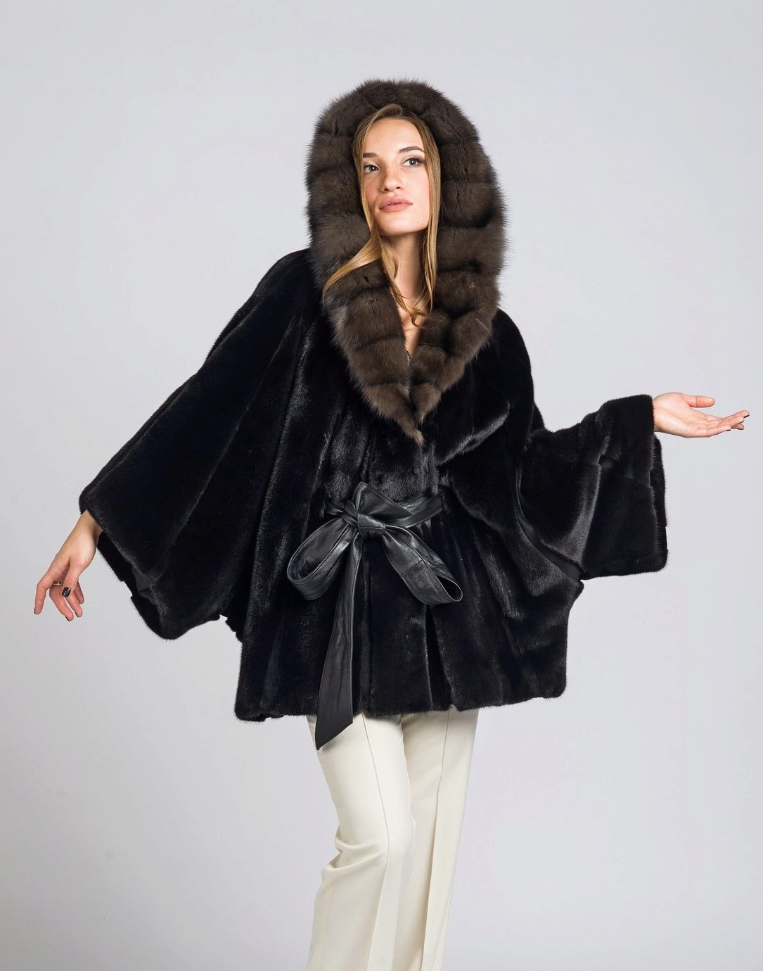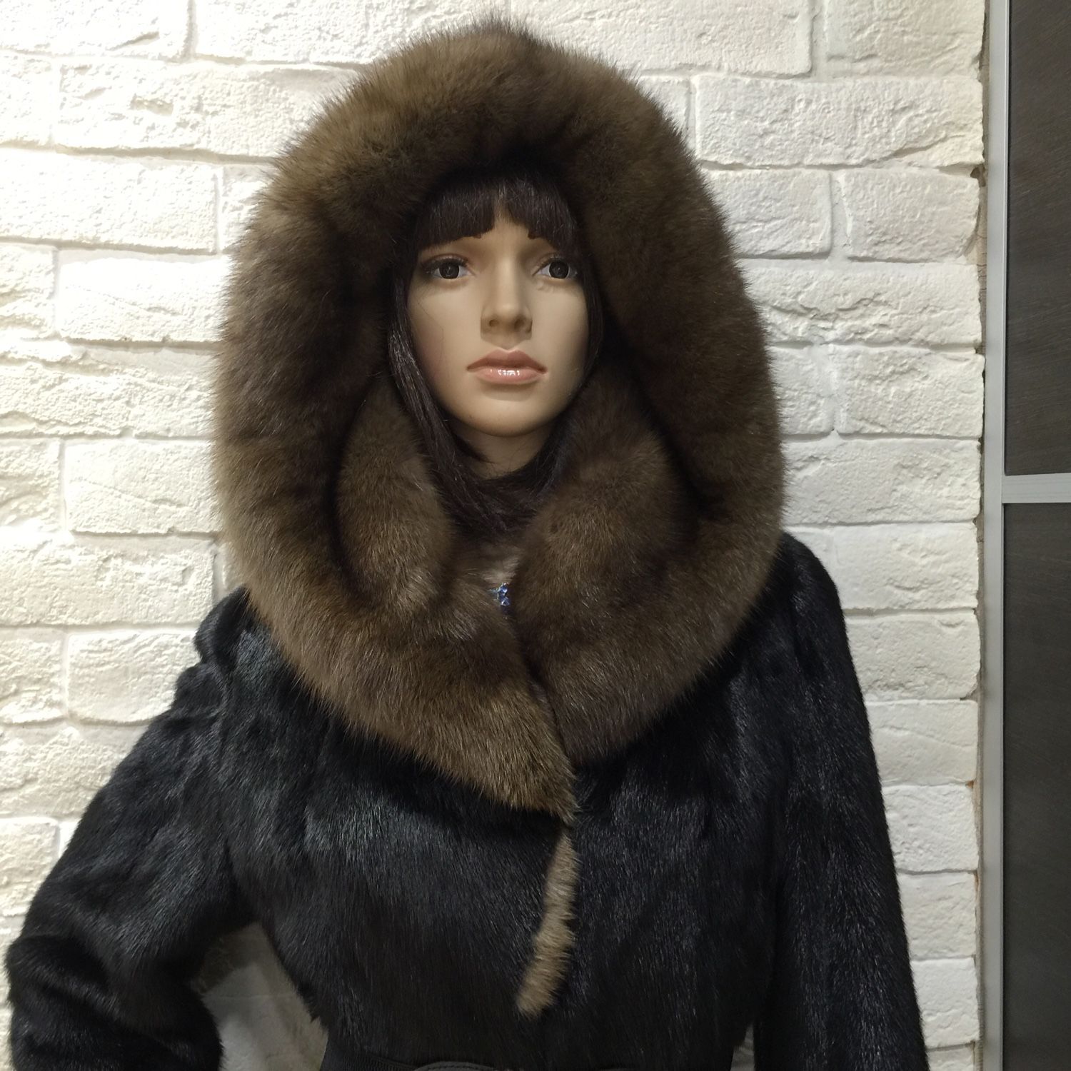 Mink coat with a hood made of sable fur