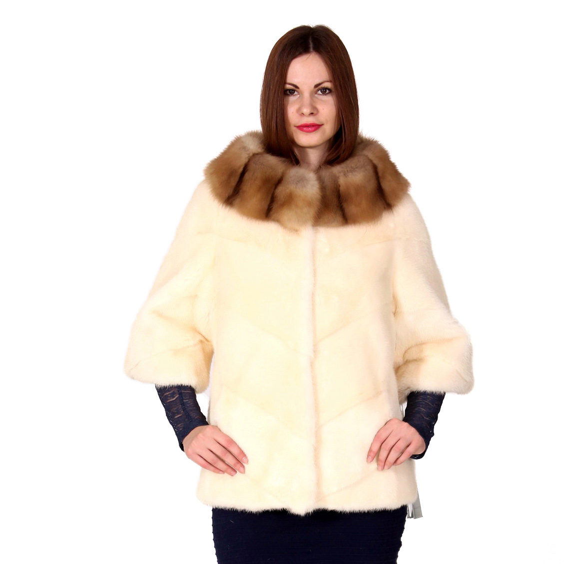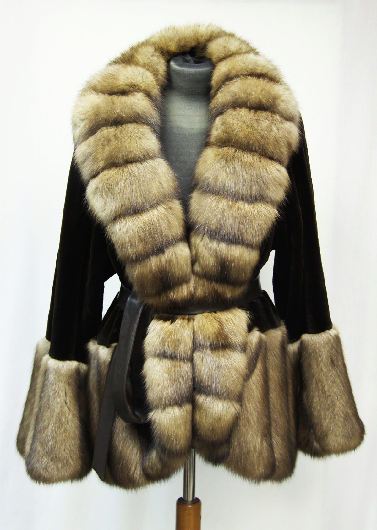 Very popular are the products of plucked mink trimmed with sable fur.