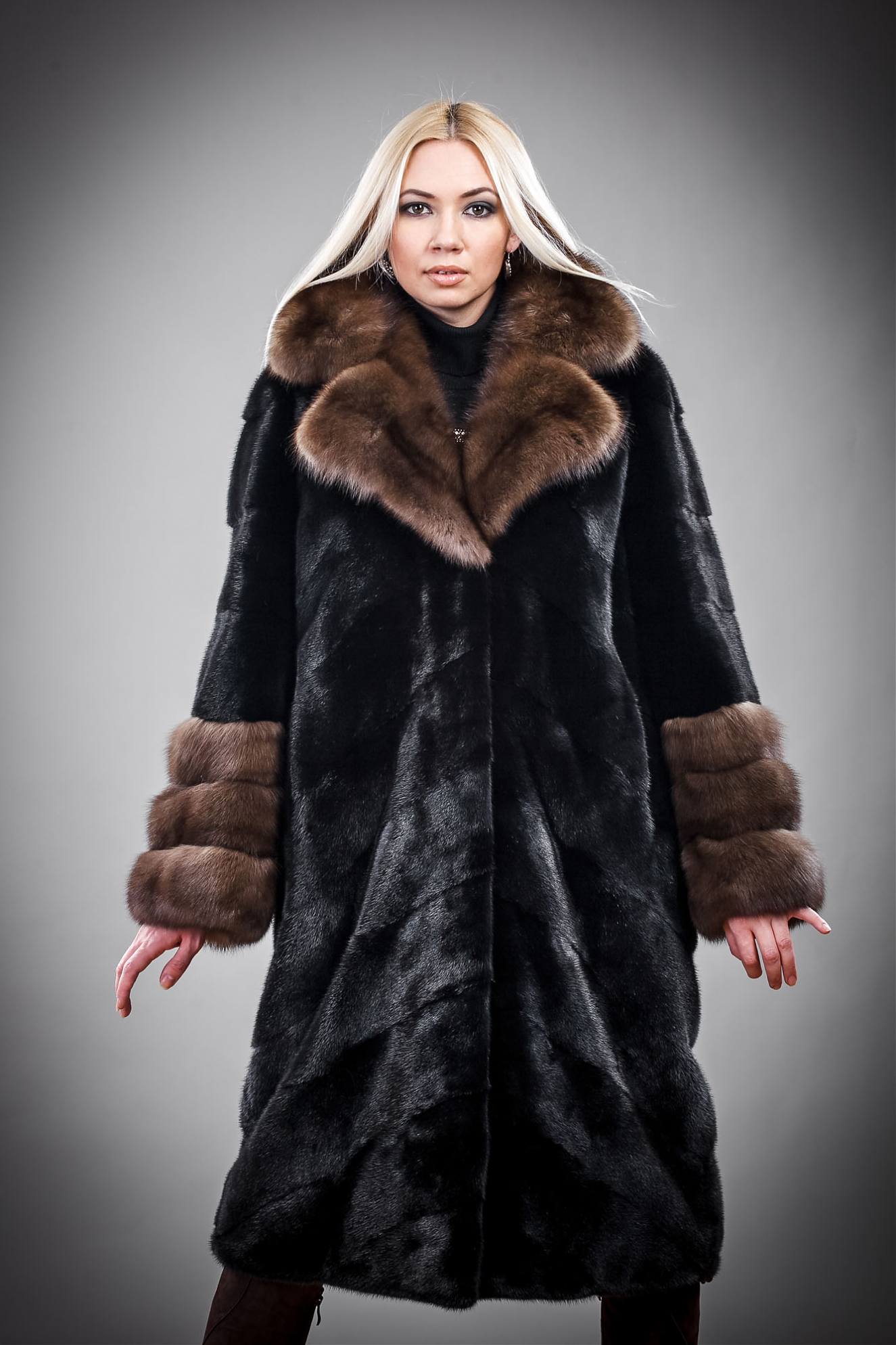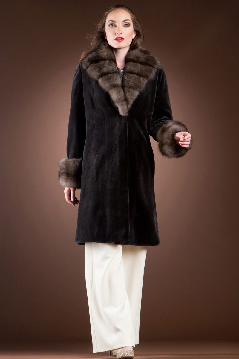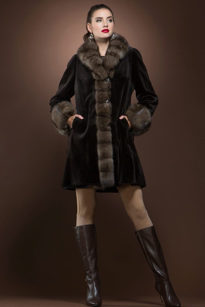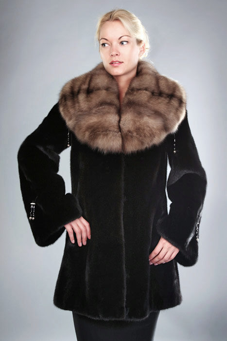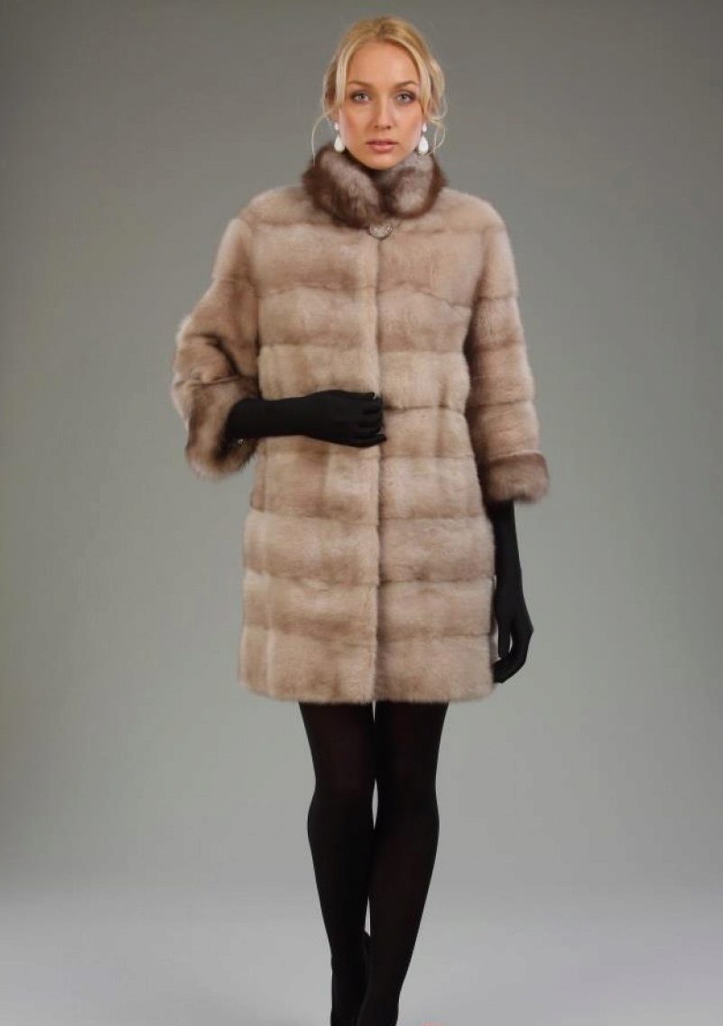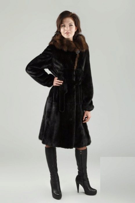 Mink coats with sable are always in fashion. Natural mink fur can be of any color, from pure white to bluish-black, including all shades of brown and gray-blue tones.