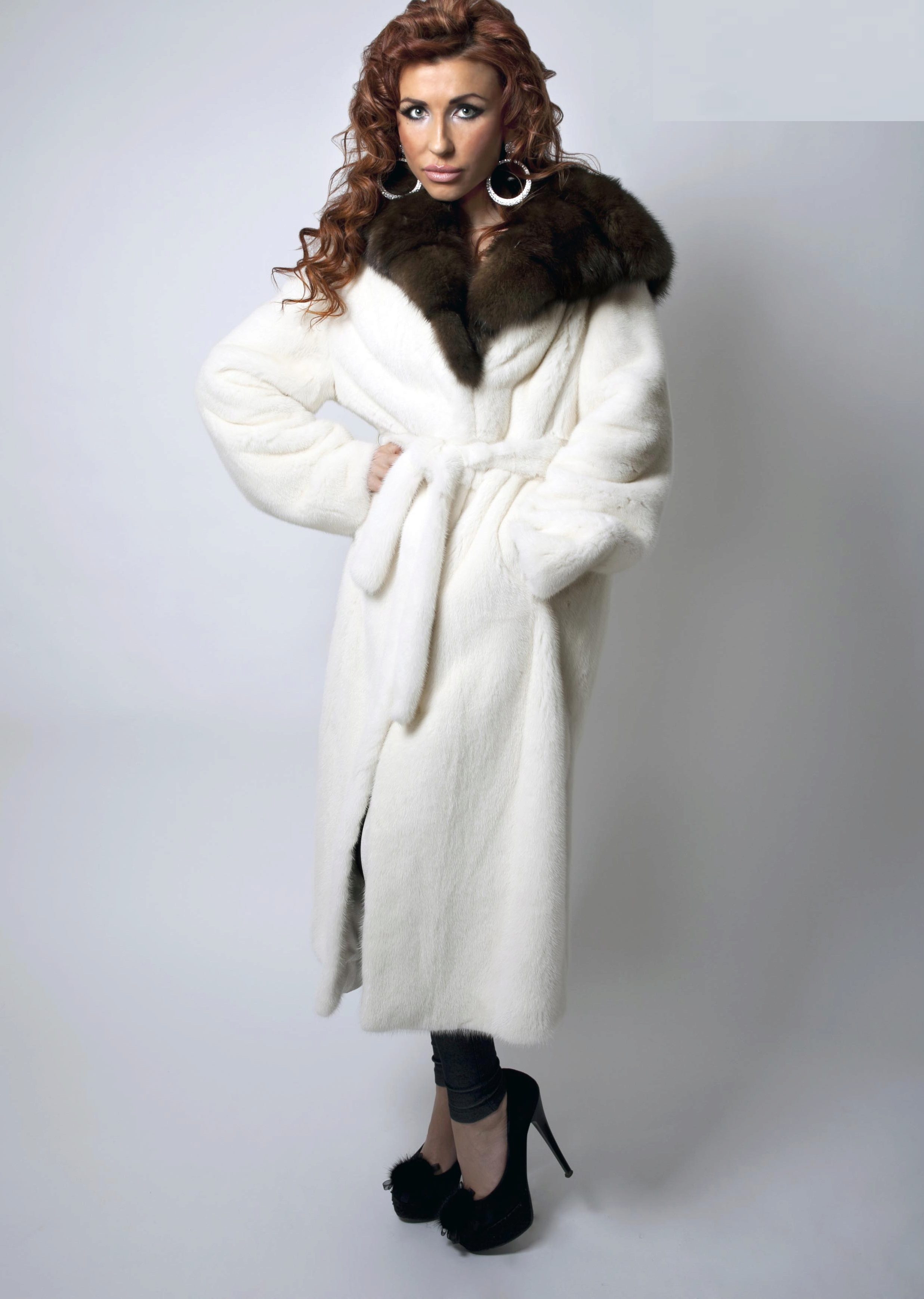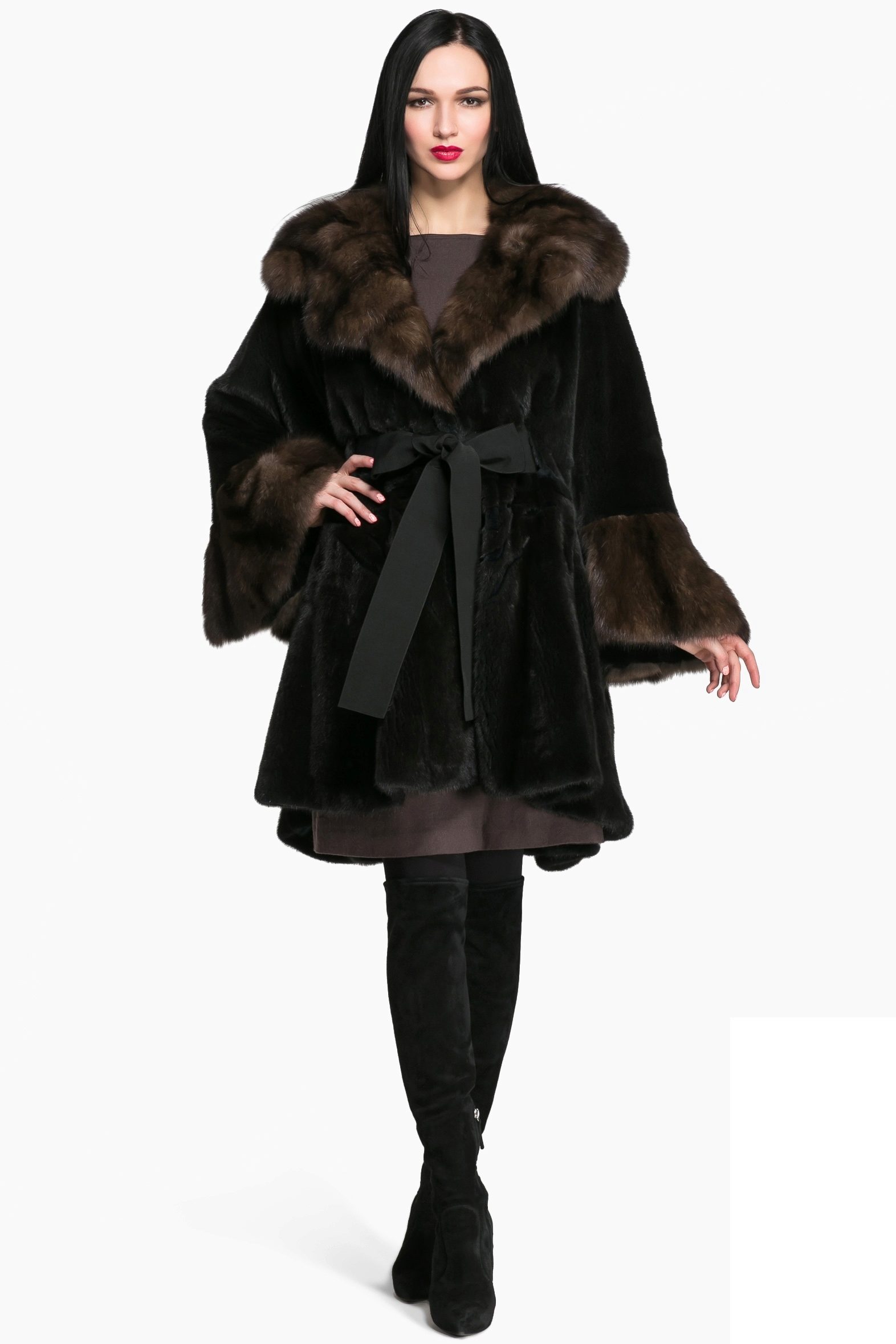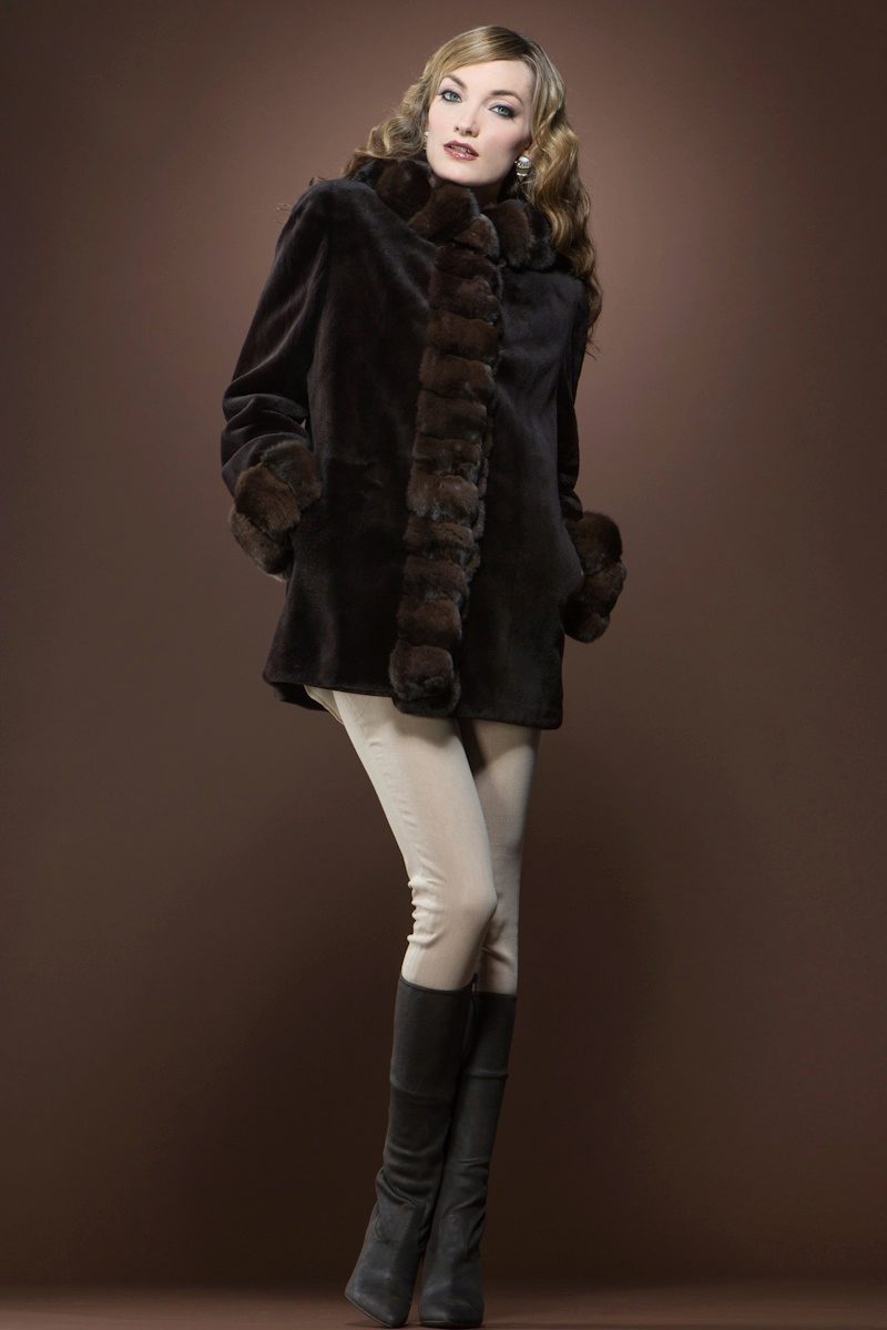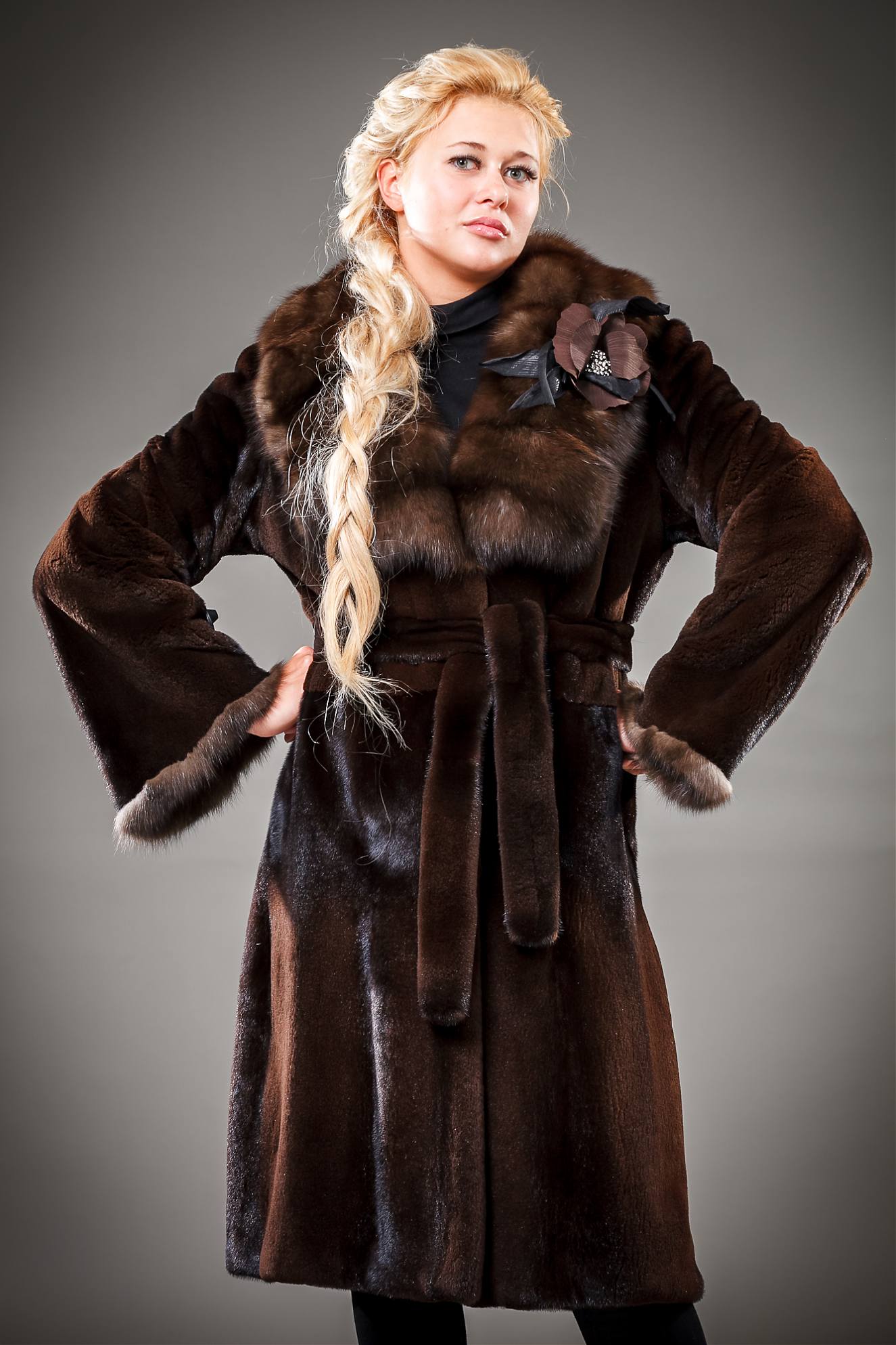 Mink coats with sable are always in fashion. Natural mink fur can be of any color, from pure white to bluish-black, including all shades of brown and gray-blue tones.