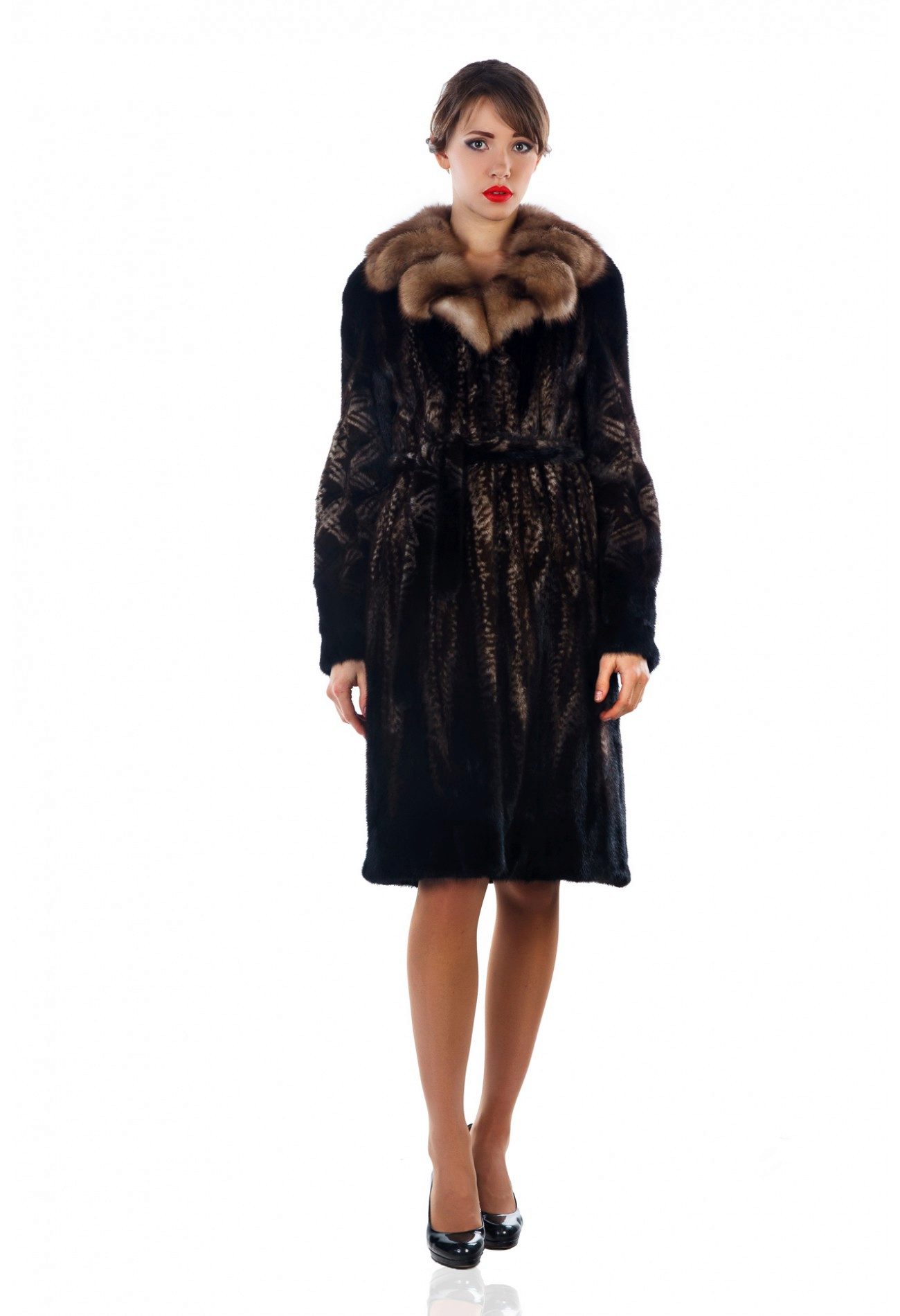 A fur coat 100-110 cm long, shaped like a trapeze, is called a "mantle". In this model can be any collar. When choosing such a fur coat, it should be remembered that the more it is flared to the bottom, the cooler it can be in the winter.