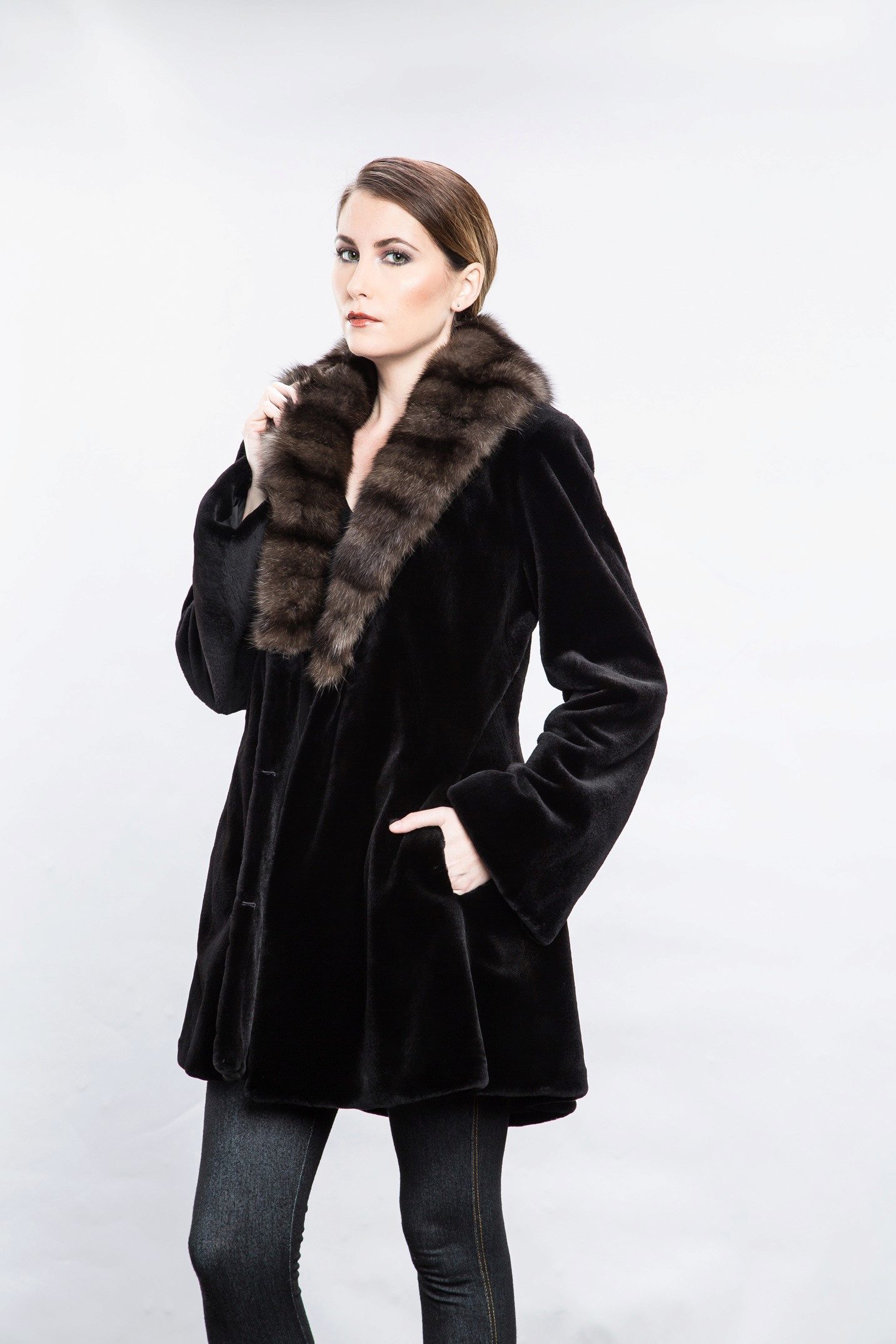 Mink coat with a sable collar