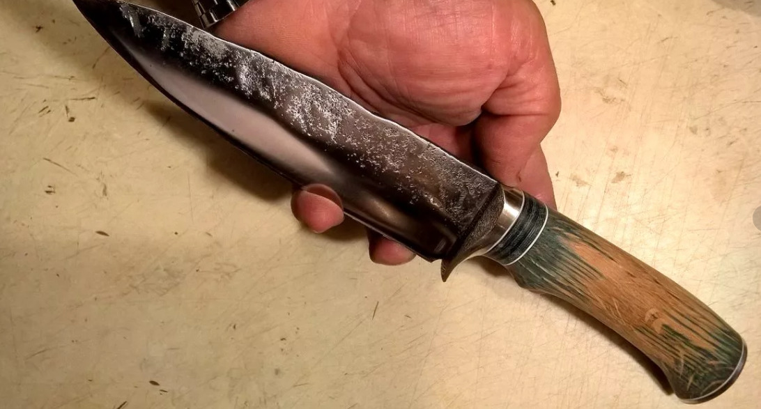 Understand that the knife is forged and made according to all the rules of blacksmithing, you can stamp on the blade, which is applied by a shock method.