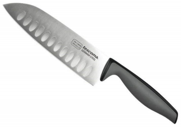 - Santoku (it is also called Japanese) - it does an excellent job with the shredding of a large amount of greenery, vegetables, and also with carving of poultry. Blade curved shape with small grooves so that the products are well separated from the knife.