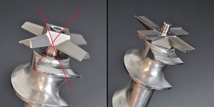 - When the screw shaft is installed in the housing, you can proceed to fixing the knife. It needs to be inserted on the thinner end of the shaft.