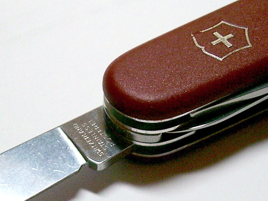 If your intended purchase satisfied these two signs, most likely, you are offered exactly the original Victorinox Swiss knife. But if you still have doubts, inspect the product in detail. Sharpening the blade should look perfect - without small burrs, notches, etc. Also test the opening mechanism (for folding models): hard triggering or other problems are unacceptable.