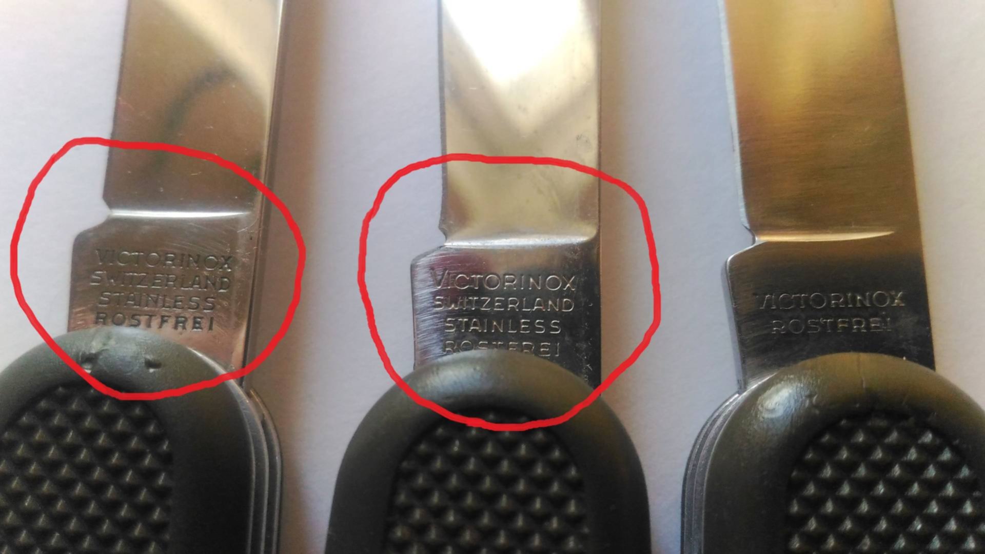 Take a closer look at the base of the blade. The Swiss always put there a label. If it is not there or the quality of performance leaves much to be desired, you are trying to foist a surrogate. The marking must be on both surfaces of the blade and be etched, rather than applied with ink. Although on products of small size marking can be one-sided.