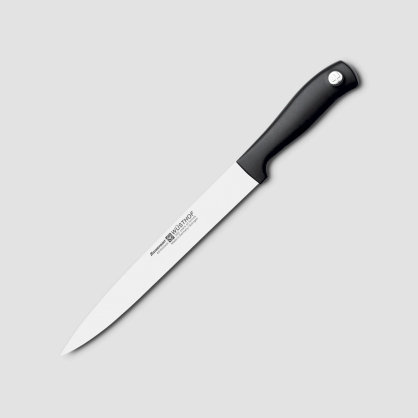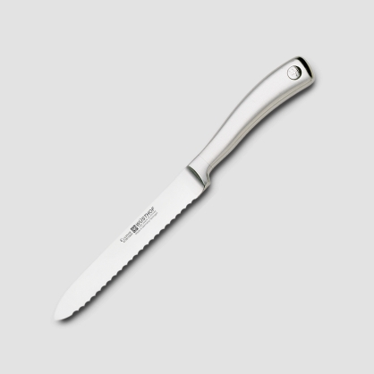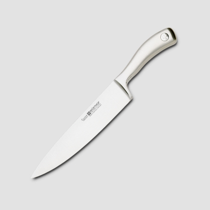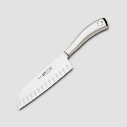 It is made entirely of hardened stainless steel in an elegant style. The unusual design is achieved by using satin polished handles with the Wusthof logo. The collection includes 20 different knives for professional and home use.