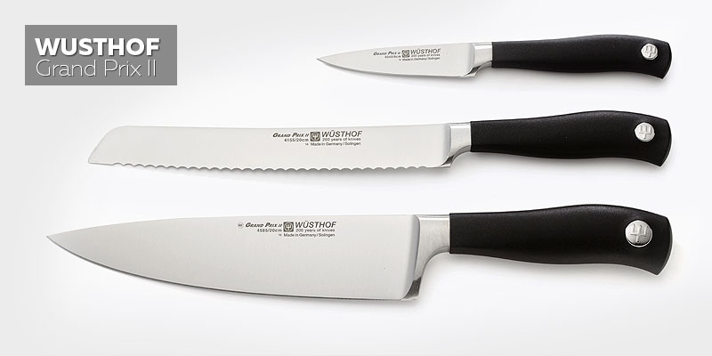 These collections combine maximum performance and bright stylish design. The blades are made of strong hardened steel, plastic anti-slip handles and ultra-sharp blades complement the balance of the design. A distinctive feature of the Grand Prix II Color knives is that the color of the handles corresponds to a specific product: meat - a tool with a red handle, vegetables - with green, fish - with blue, poultry - with yellow. The collection includes more than 20 different blades and is in the middle price range.