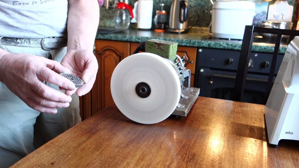 Now it is necessary to rinse both elements thoroughly under running water in order to wash off fine metal filings, collect a meat grinder and roll a piece of meat. You will immediately feel the difference and see if you have coped well with the sharpening. If not, repeat the whole procedure again.