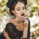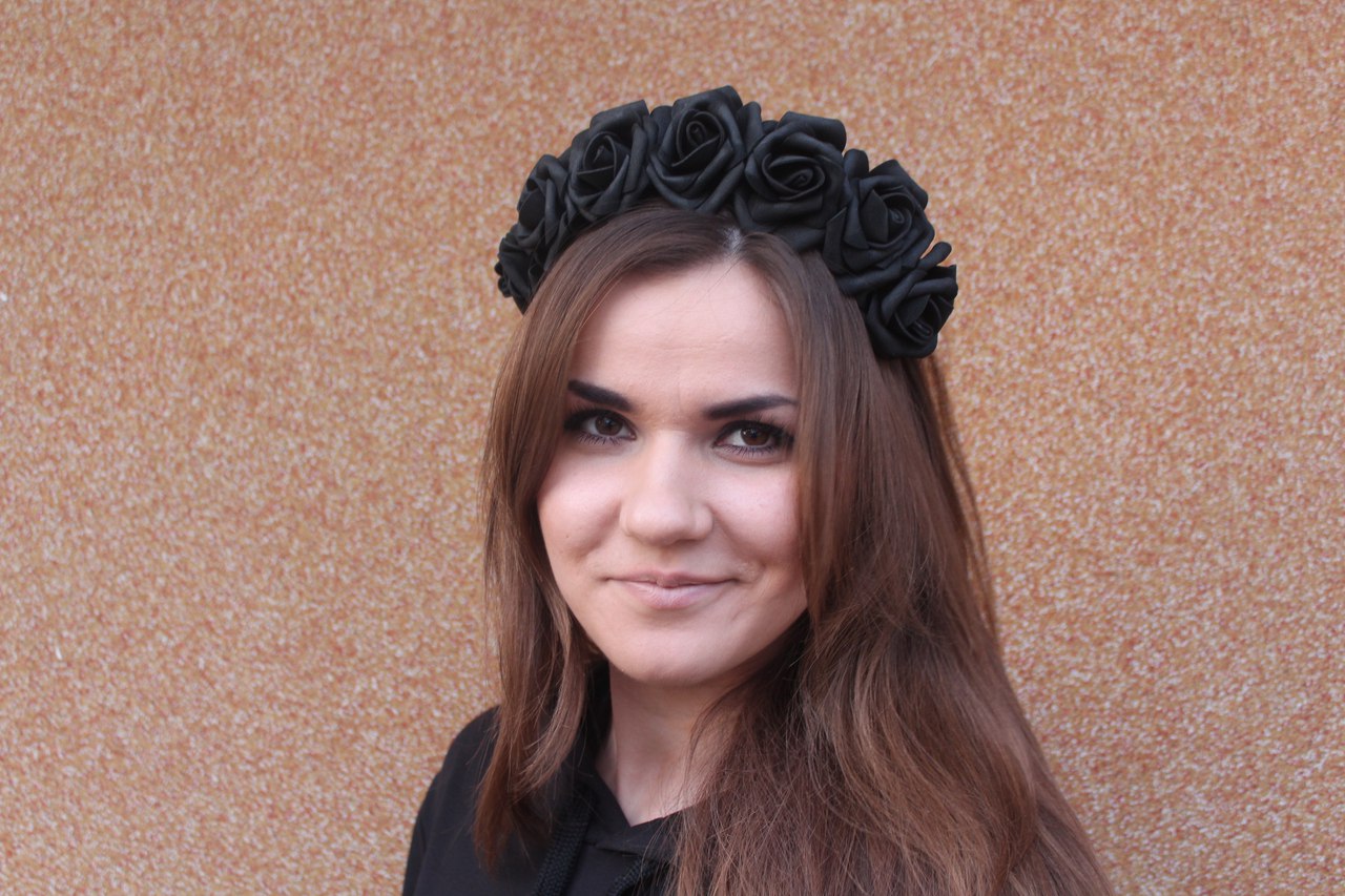 Hoops of black roses look very impressive, they make the image spectacularly luxurious. Such an accessory, especially in combination with red lipstick, will be a great solution for an evening out.