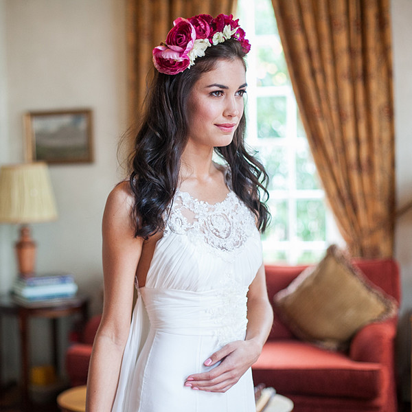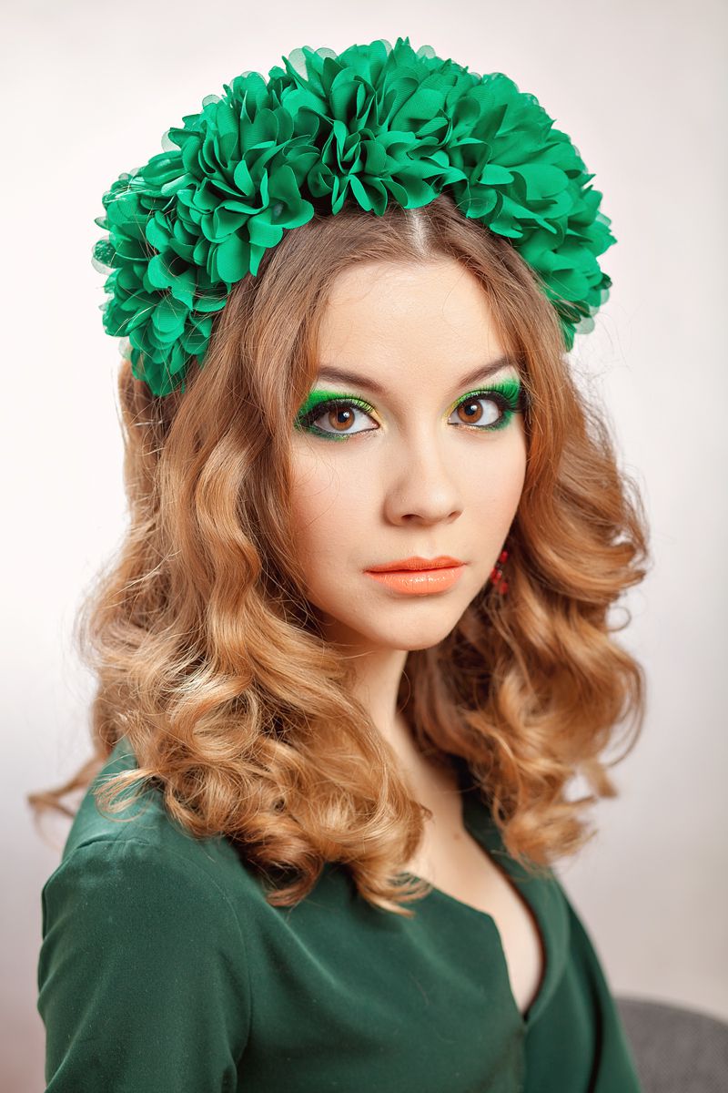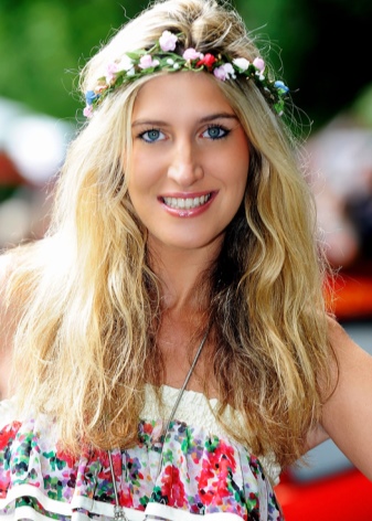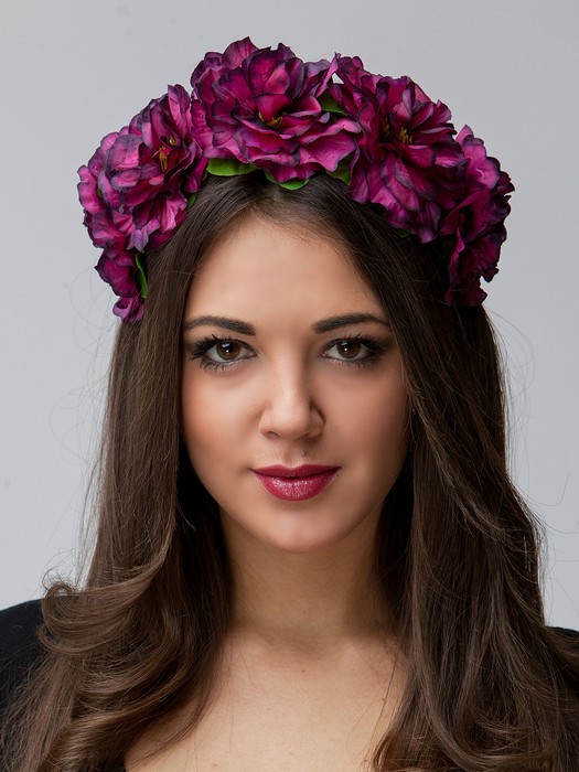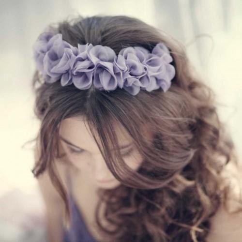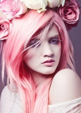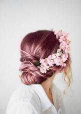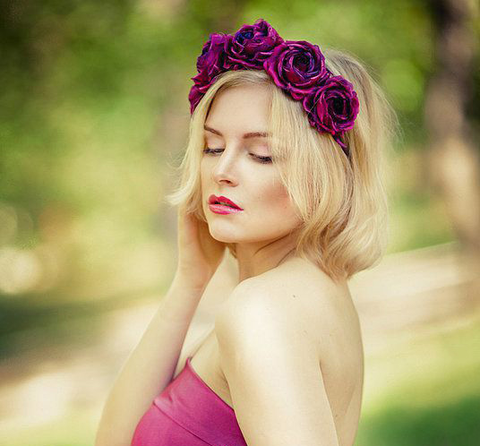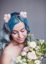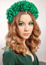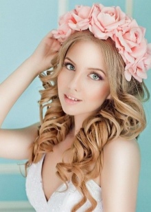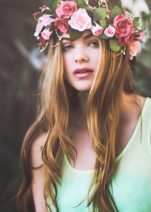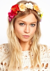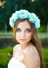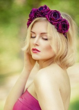 The hoop with flowers will look great on the hair of any non-natural shade - pink, purple, green. Unusual hair color in itself is an application for pretentiousness, so if you add a wreath to your hair, it will look very organic.