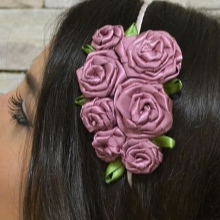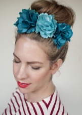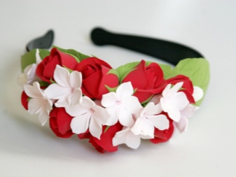 Very often, these flowers are decorated with beads, feathers, rhinestones and other decorative elements, which makes the finished accessory more beautiful and desirable.