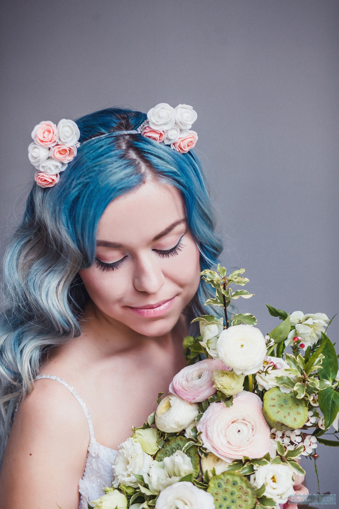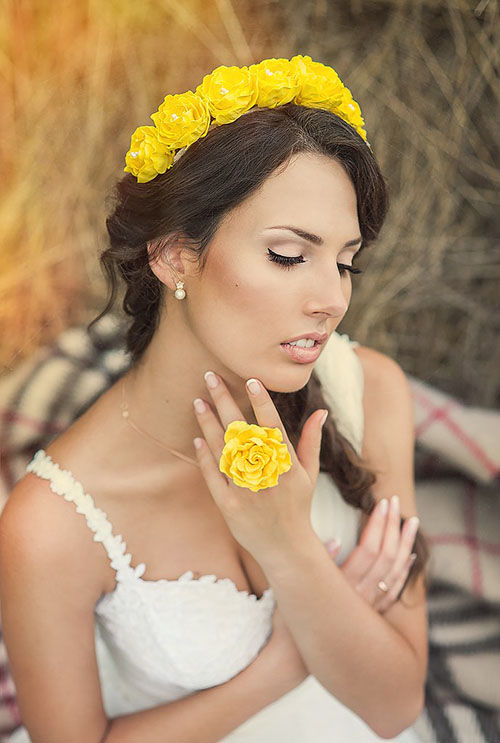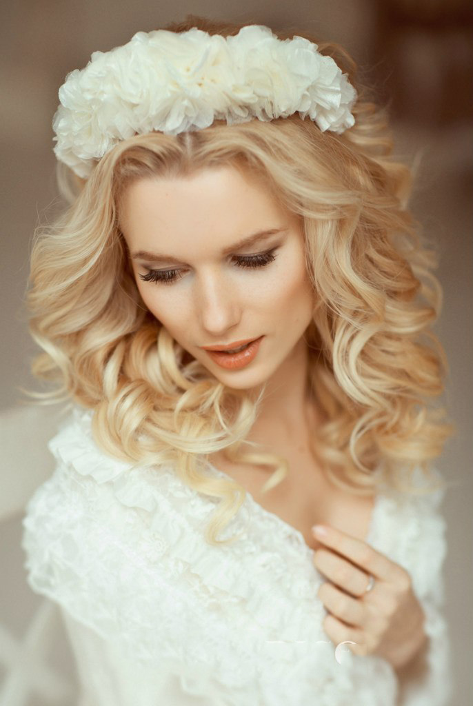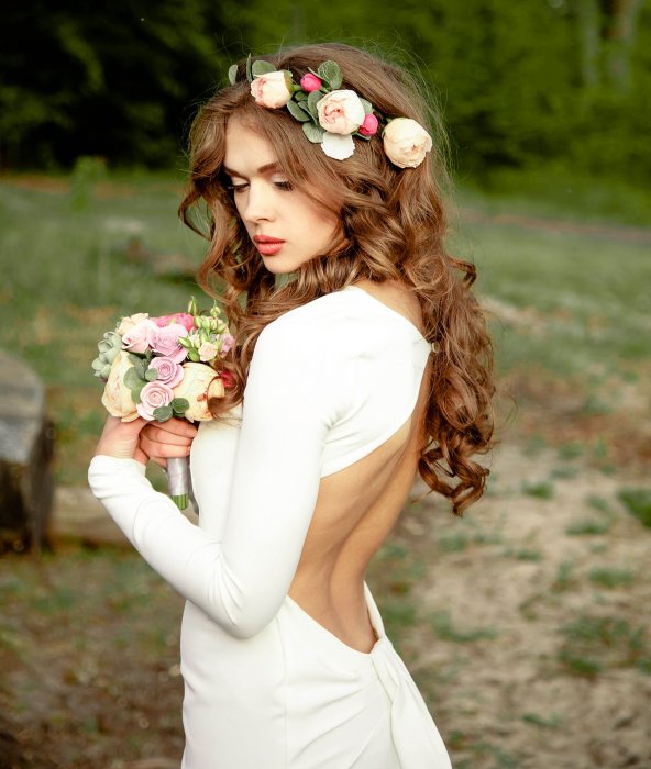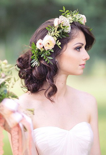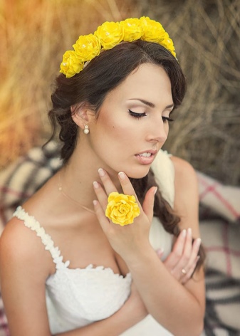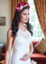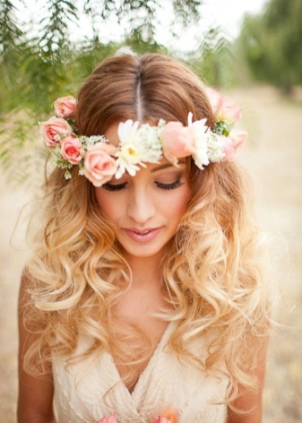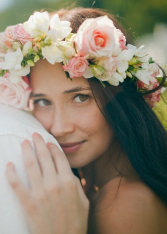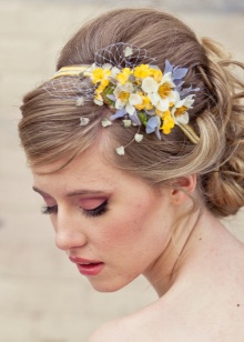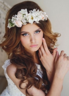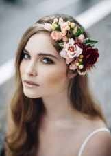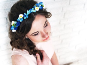 Most often, girls choose headbands with roses, daisies, orchids, gerberas. Creative brides rely on originality, decorating their hair with dandelions, black-necks or lavender.