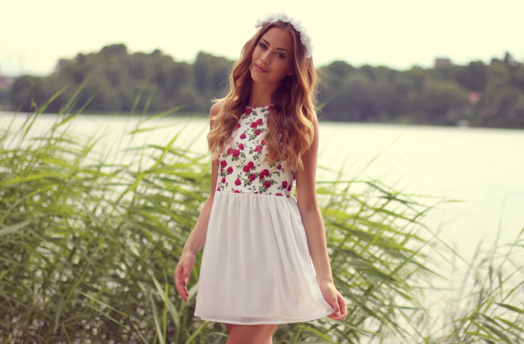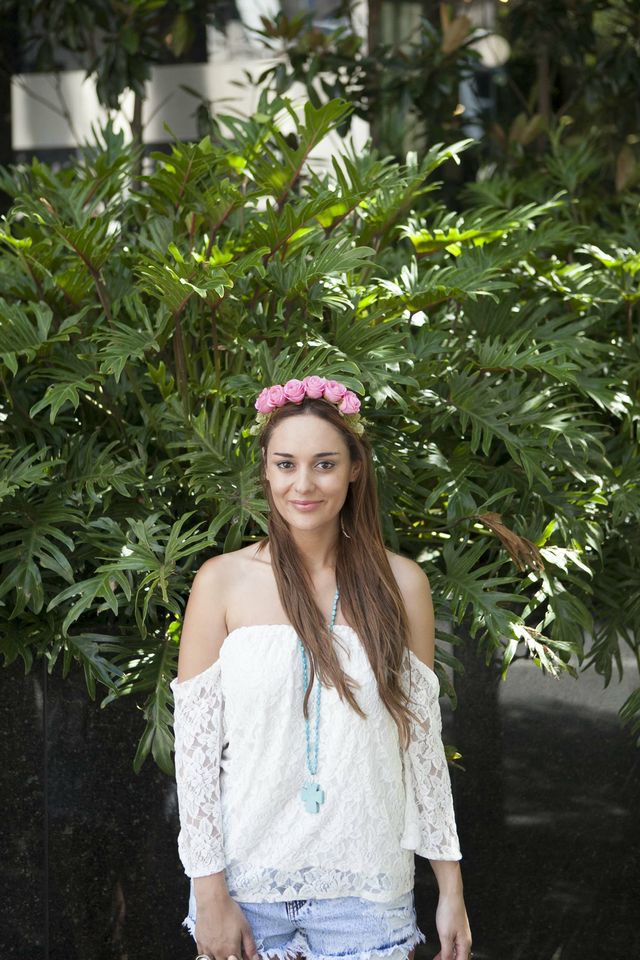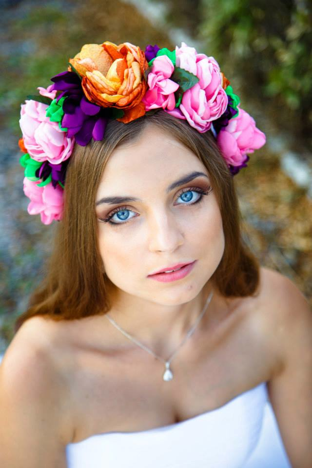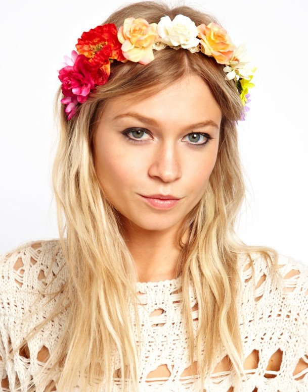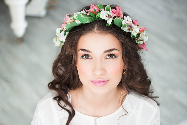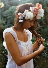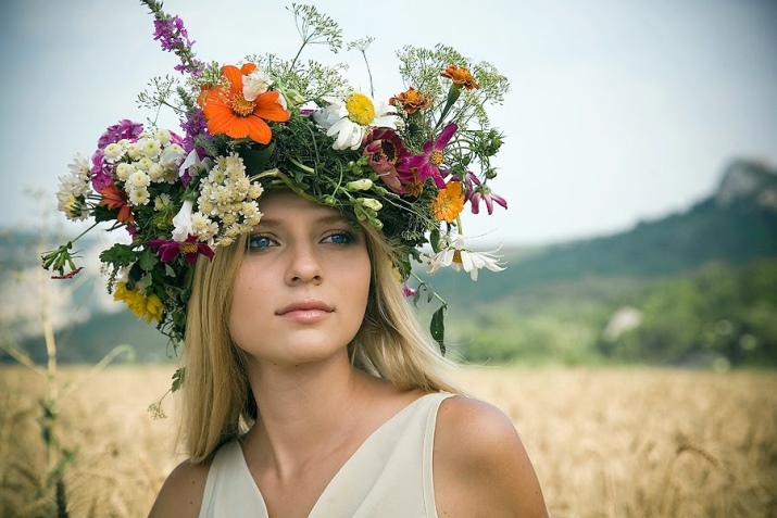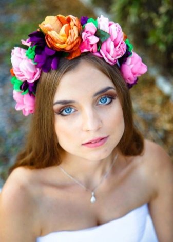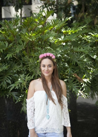 If you are a tanned girl, choose a wreath of bright color, complementing it with clothes with ethnic ornament and appropriate ornaments, get an image in the style of boho-chic. It can be a bright dress with a floral print, a sundress, or even jeans with an airy tunic.