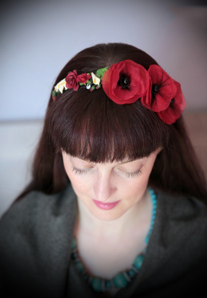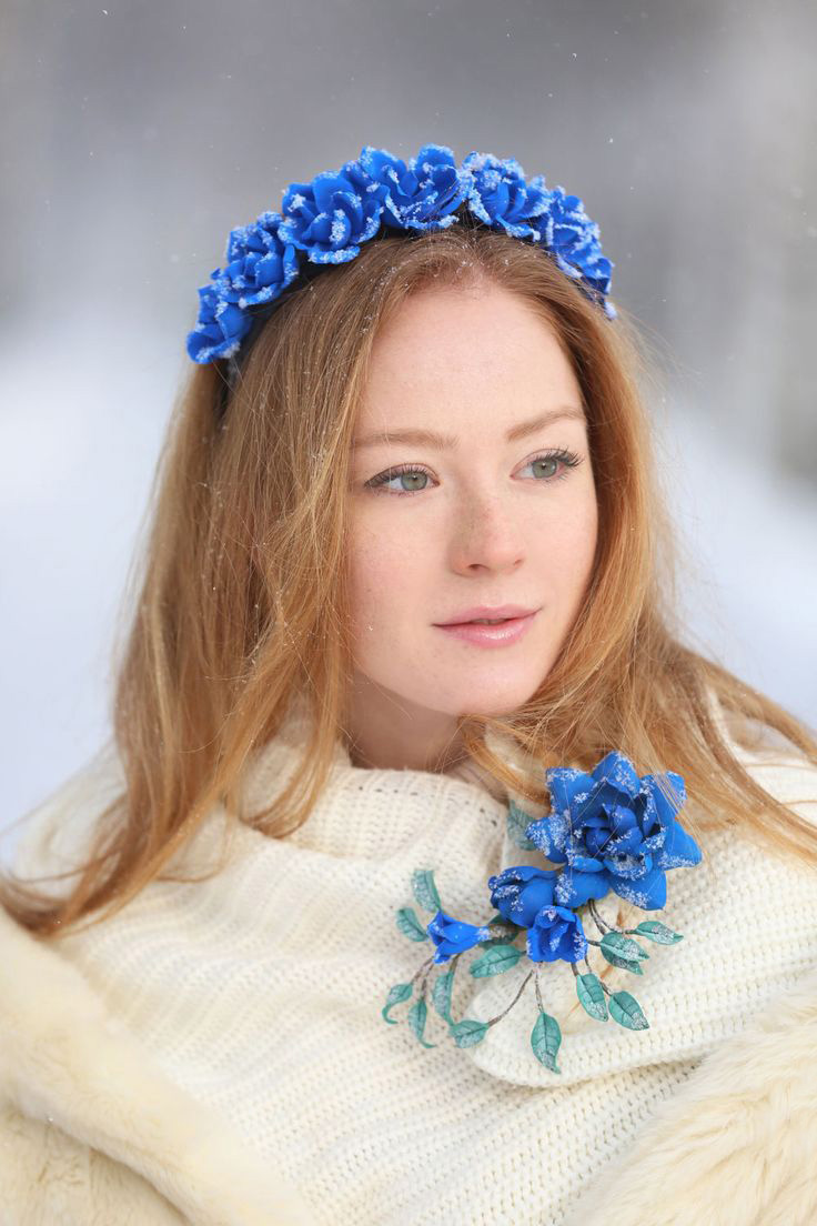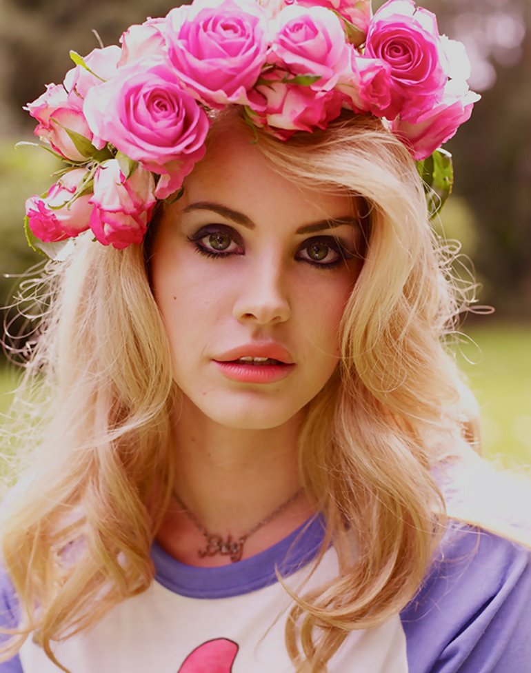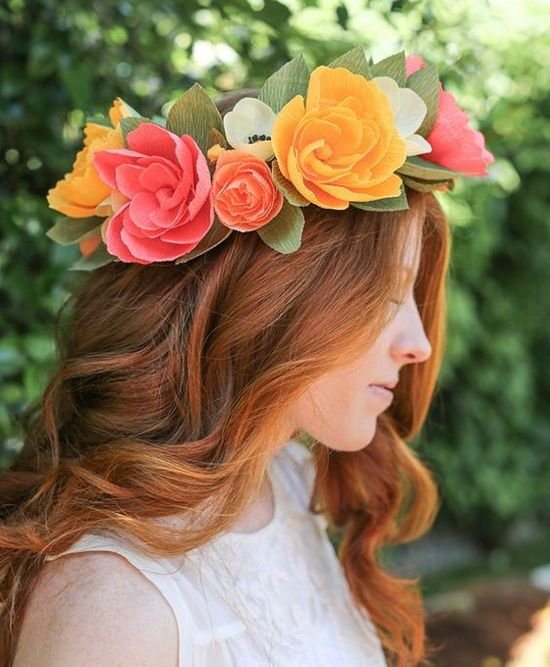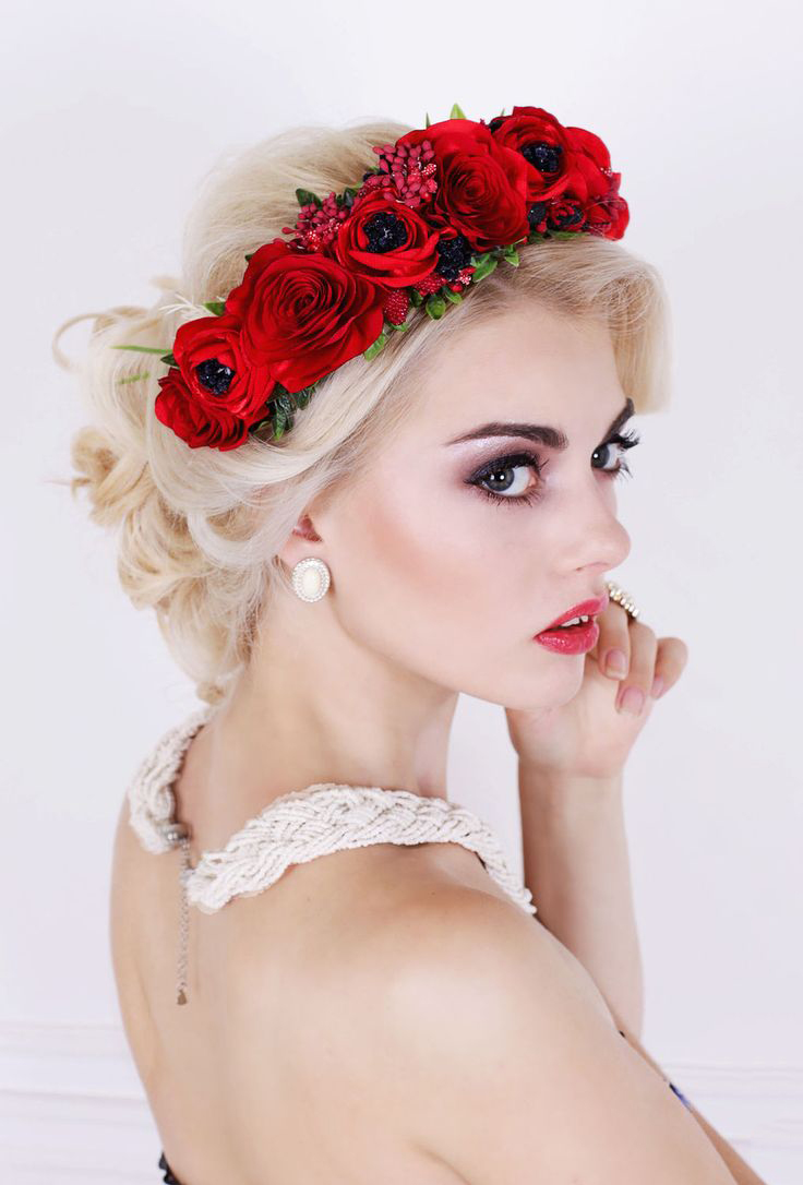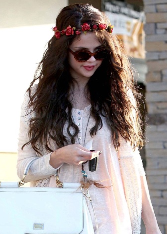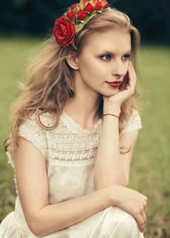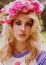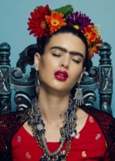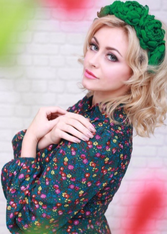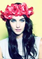 Headbands with large flowers are suitable for special occasions. Such a wreath resembling a Russian kokoshnik creates the illusion of a crown on the head. They were especially popular a few years ago, thanks to singer Lana Del Rey. It is impossible to say that her image was original, many famous women used them before, one of the most popular is the famous artist Frida Kahlo.