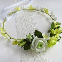 Wreaths with pink or yellow flowers are suitable for a delicate, sophisticated image. For example, such an accessory will complement the look for a romantic date. Untied will look carnations or tulips in combination with chamomiles or other flowers in white.