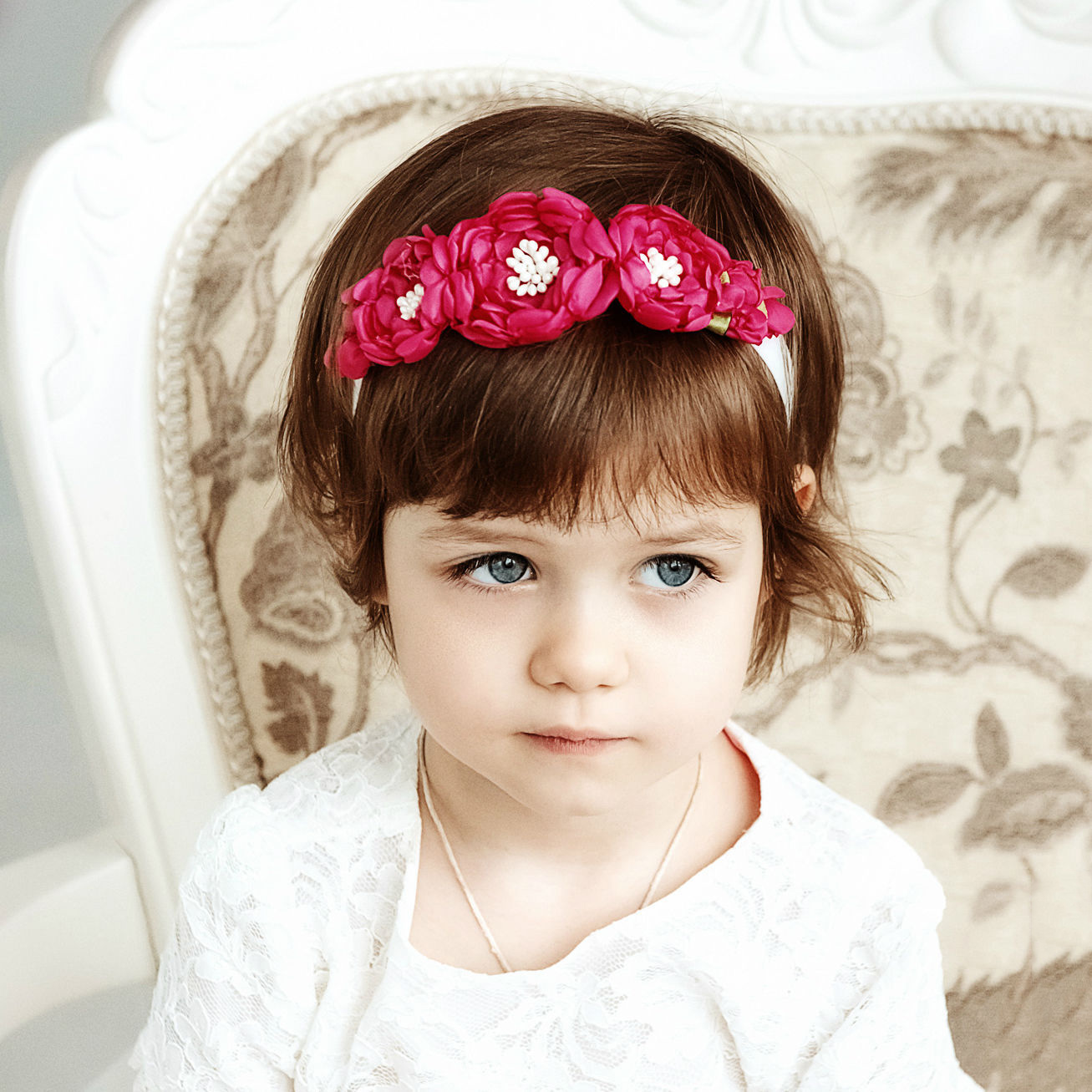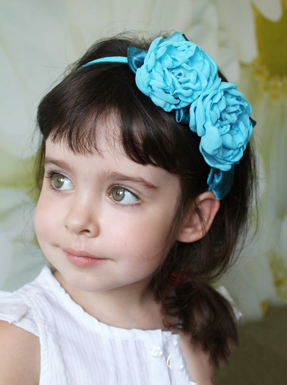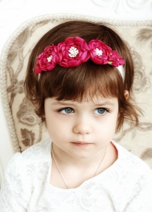 Hoops with flowers look great on girls of any age. It is possible to choose a suitable headband under each dress of the baby, and buy a satin ribbon, which will play the role of a belt at the waist. Several accessories will allow you to drastically update the usual outfit crumbs.