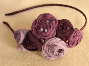 Ready-made flowers made from textiles stand out from the rest. They are very gentle and romantic, so are ideal for creating feminine headbands.