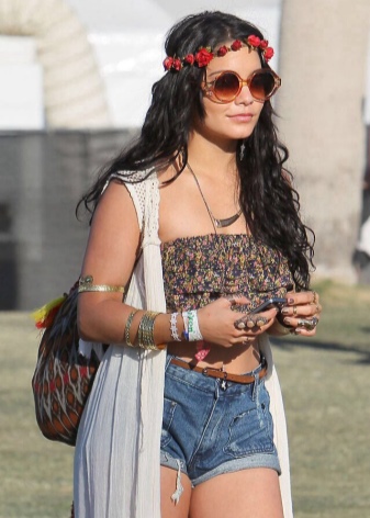 Today's fashion is democratic, so it can be worn even with short shorts and a T-shirt. The hoop, decorated with flowers, will once again emphasize your femininity and refinement, regardless of your image.