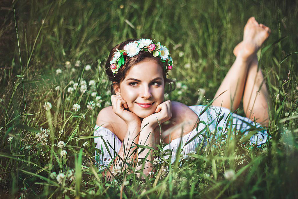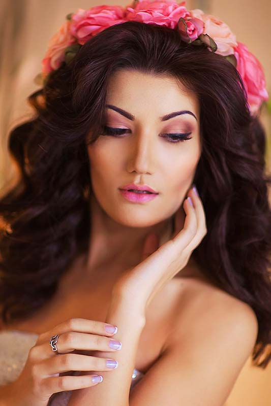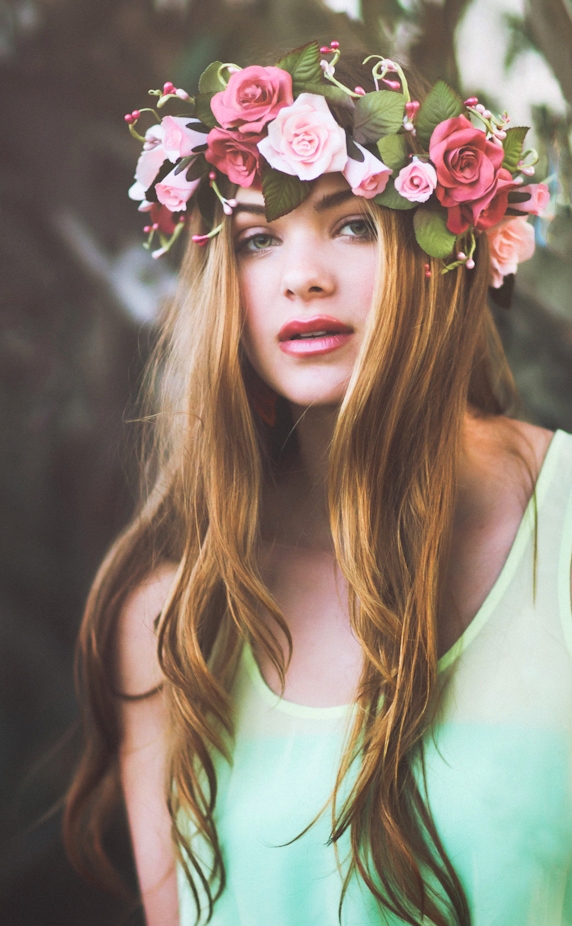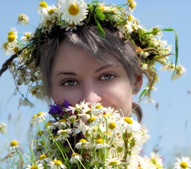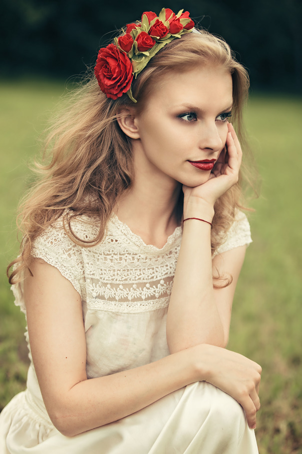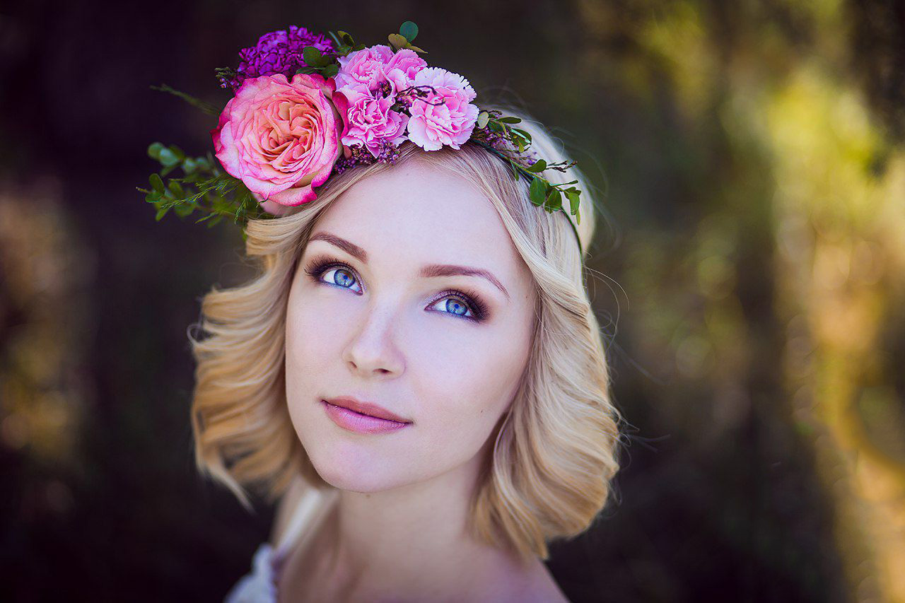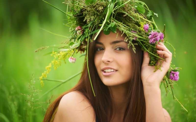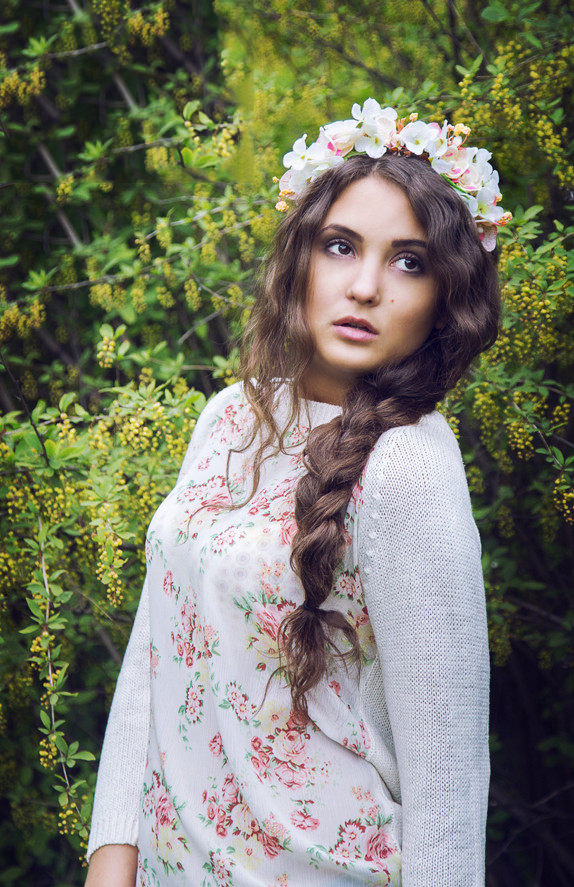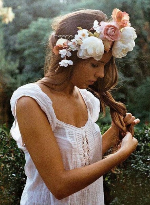 Natural flowers in her hair, perhaps, the first decoration that began to be used by women. In Europe, in Turkey, in India, in Russia.