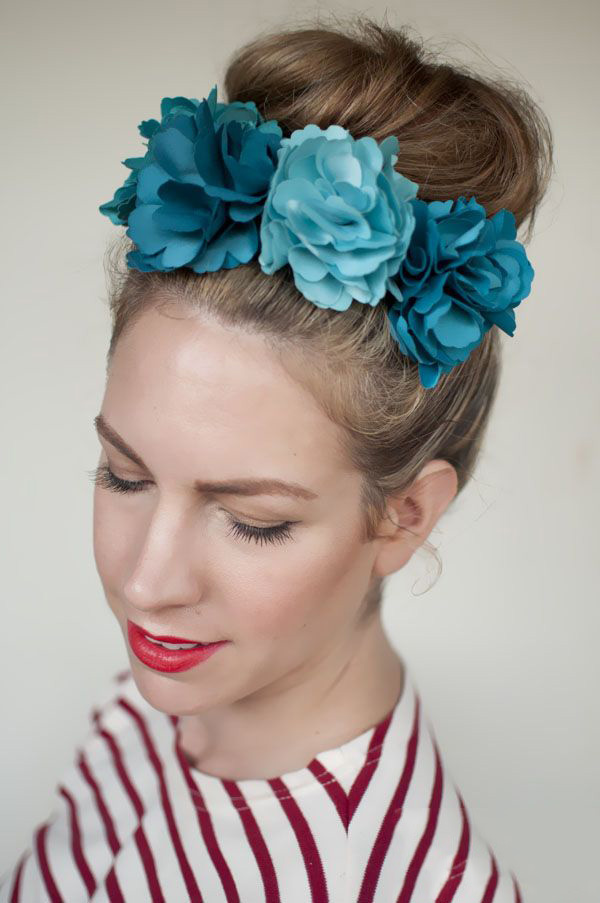 Headbands with flowers can instantly transform any hairstyle. Especially good they look with light hairstyles and styling that you can do yourself. This may be a sloppy bundle, with a pair of strands released, or simply loose curls.