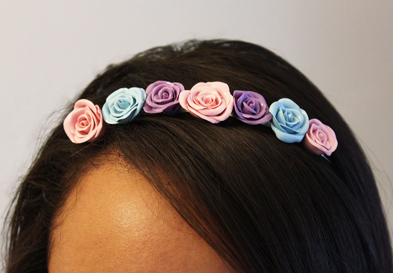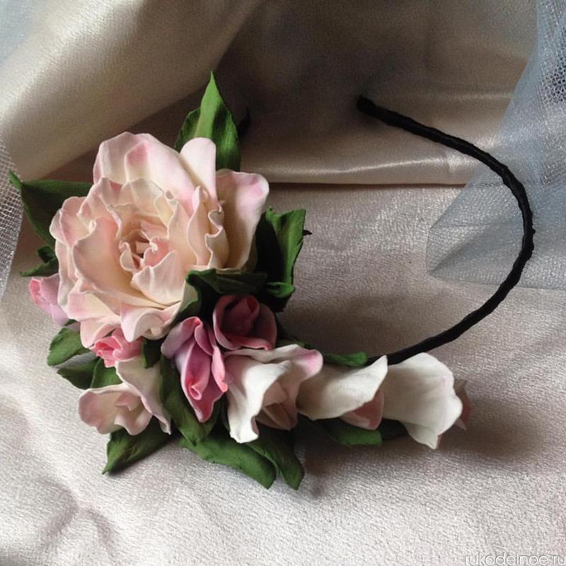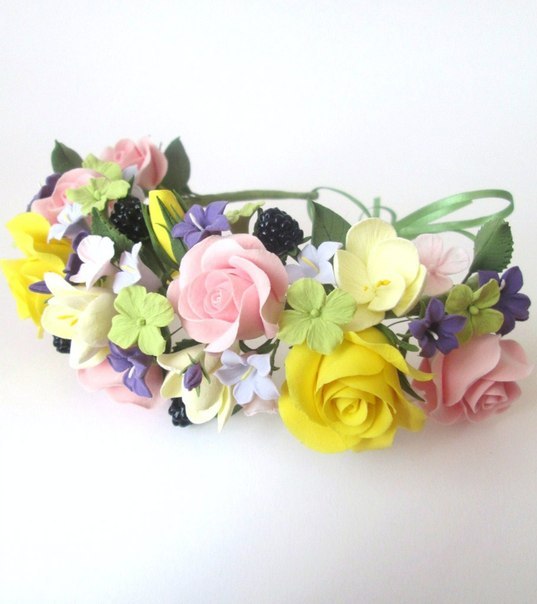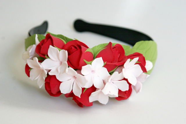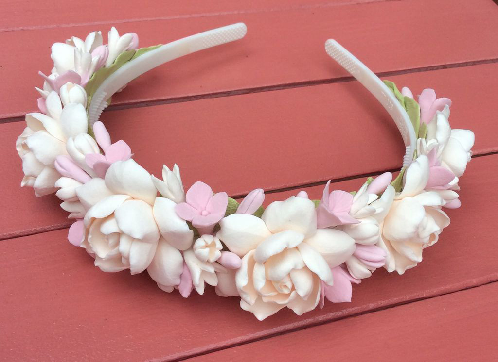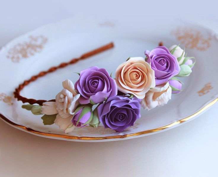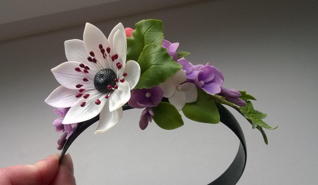 What can flowers be made of? To do this, use a variety of materials, they can be textile, paper, made of polymer clay. The variety of models is unlimited, so that both little girls and ladies of any age can pick up an accessory on their heads.