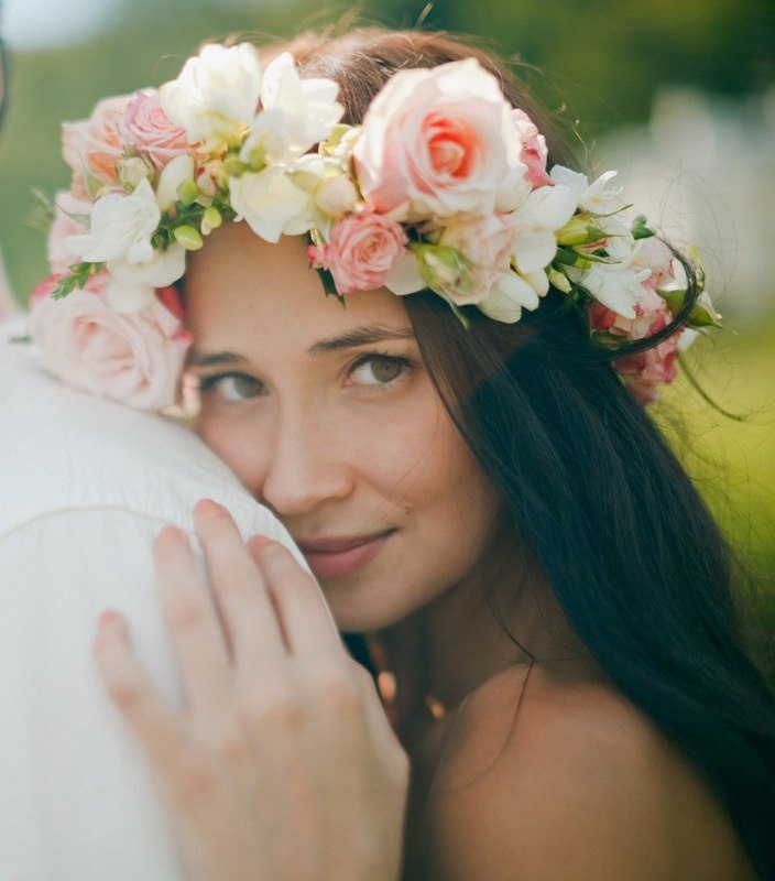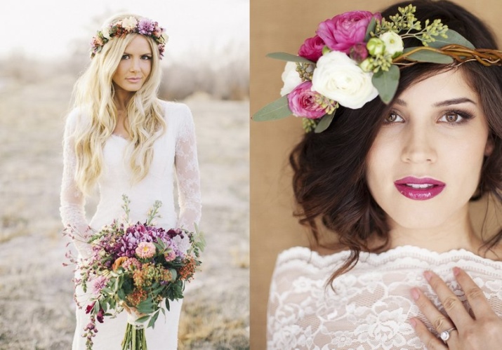 If you choose clothes in the style of ethno and boho, the wreaths on your head will be the perfect complement to the image.